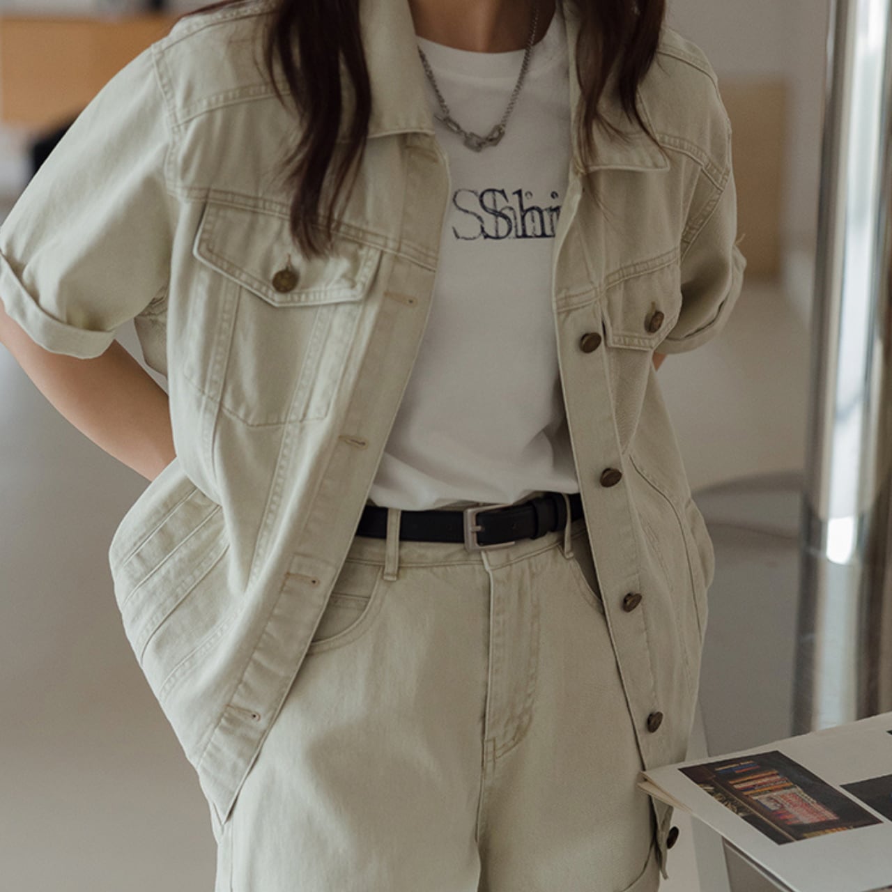 パンツはショート丈で涼しげな印象を与え、デイリー使いにも最適です。