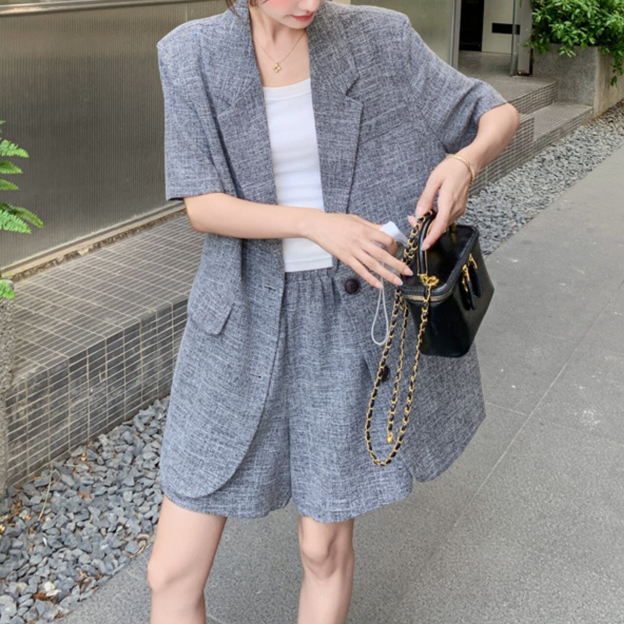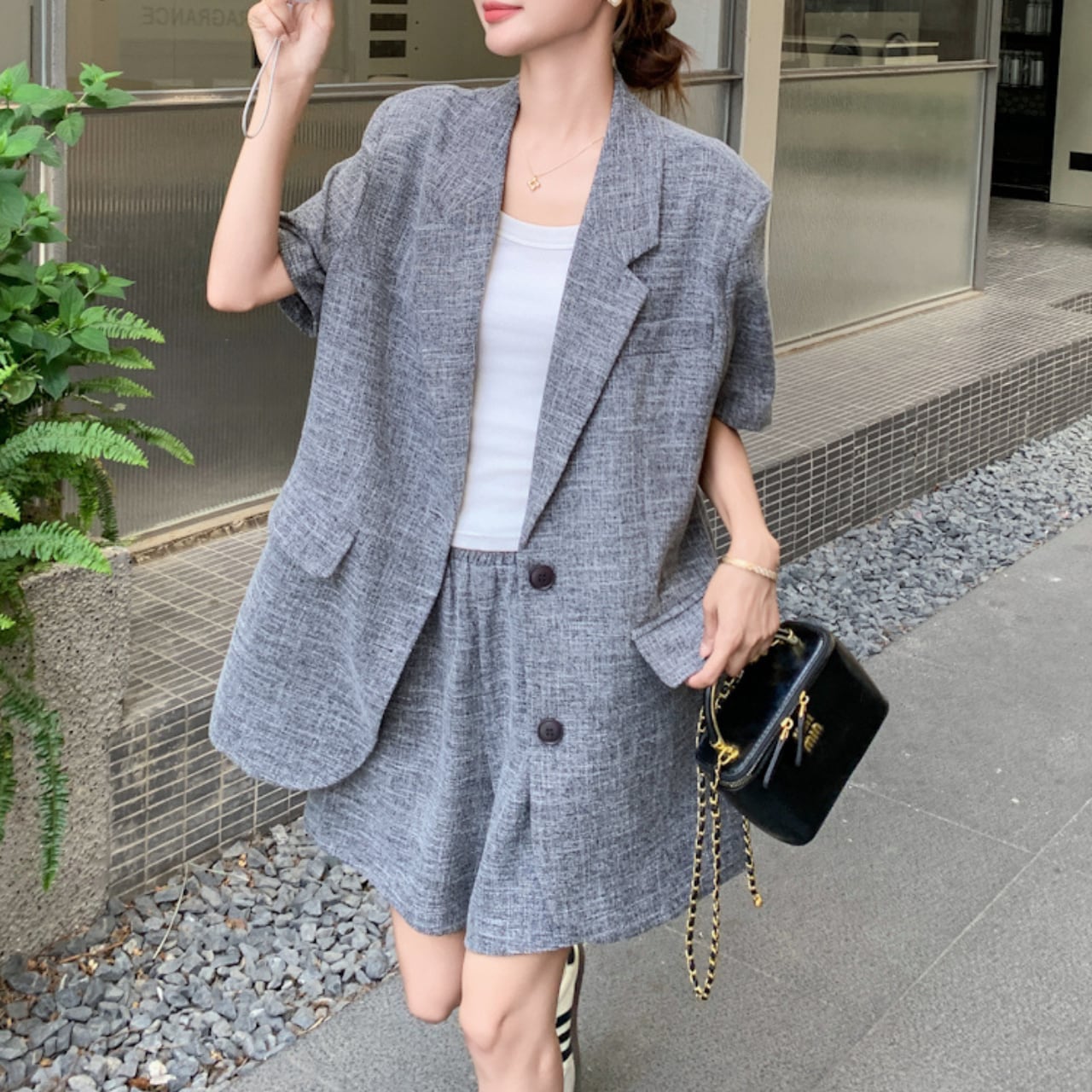 グレーのジャケットとパンツのセットアップアイテムです。 ジャケットはすっきりとしたシルエットで、テーラードの仕立てが大人の雰囲気を引き立てます。 シングルブレスト仕様で、どんなインナーとも相性抜群。 体にほど良くフィットする美しいシルエットで、着丈のバランスが考え抜かれたモダンな印象です。 パンツはウエスト周りはすっきりとしたシルエットで、腰回りをきれいに見せます。 オフィスカジュアルはもちろん、休日のお出かけや友人とのランチにも活躍すること間違いなし。インナーにTシャツやキャミソールを合わせて、自由自在に多彩なコーディネートを楽しめます。 ■カラー グレー ■サイズ ジャケット XS 着丈:78cm 肩幅:45cm 胸囲:106cm 袖丈:25cm S 着丈:79cm 肩幅:46cm 胸囲:110cm 袖丈:26cm M 着丈:80cm 肩幅:47cm 胸囲:114cm 袖丈:27cm L 着丈:81cm 肩幅:48cm 胸囲:118cm 袖丈:28cm XL 着丈:82cm 肩幅:49cm 胸囲:122cm 袖丈:29cm 2XL 着丈:83cm 肩幅:50cm 胸囲:126cm 袖丈:30cm パンツ XS 着丈:40cm ヒップ:113cm ウエスト:64cm S 着丈:41cm ヒップ:117cm ウエスト:68cm M 着丈:42cm ヒップ:121cm ウエスト:72cm L 着丈:43cm ヒップ:125cm ウエスト:76cm XL 着丈:44cm ヒップ:129cm ウエスト:80cm 2XL 着丈:45cm ヒップ:133cm ウエスト:84cm ※採寸方法により1〜3cmの誤差がある場合がございます。 ■モデル 身長: 165cm 体重:46kg Mサイズ着用 ◼️素材 ポリエステル98% 、ポリウレタン2% ■商品番号 S1063 ・・━━・・━━・・━━・・━━・・━━・・━━・・ 【お届けについて】 当ショップの商品は海外より取り寄せ・発送となりますので、ご入金から3〜4週間前後で発送いたします。 【お支払い方法について】 ・クレジットカード決済(VISA/Master/JCB/AMERICAN EXPRESS) ・キャリア決済(docomo/au/Softbank/Y!mobile) ・あと払い Pay ID決済 【注意事項】 ・商品の在庫切れや生産中止、生産遅延が発生した場合は、注文キャンセルとなる可能性がありますので、予めご了承ください。 ・こちらは輸入品となりますので、日本製品とは検品基準が異なります。新品未使用品でもごくわずかな汚れや傷がある場合がございます。 ・イメージ違いやサイズ・カラー相違による返品・交換はお断りします。 ・お手持ちのスマートフォンやパソコンの液晶環境によって、商品のお色味が若干異なる場合があります。 ・発送時期によりデザイン・素材・細部が変更される場合があります。 ご購入前にこちらをお読みください →https://solemy.base.shop/blog/2024/11/20/121101 ・・━━・・━━・・━━・・━━・・━━・・━━・・