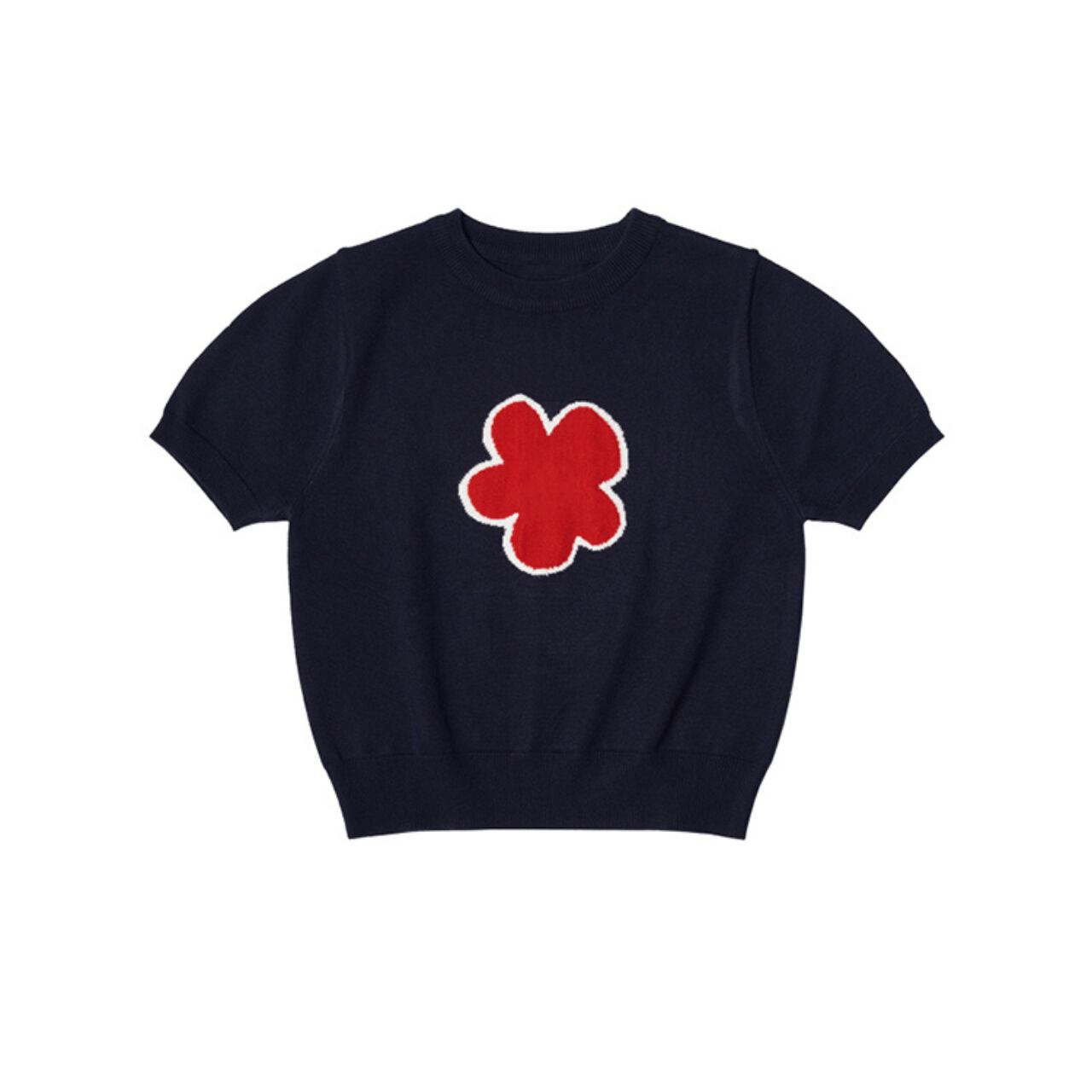 短袖のクルーネックで、どんなボトムスとも相性抜群です。ウエスト部分のリブ編みは、すっきりとしたシルエットを演出しています。