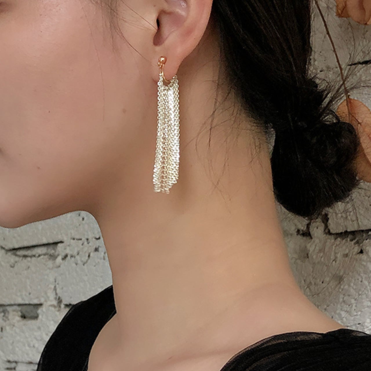 歩くたび、振り返るたびに美しく揺れるチェーンタッセルが、顔周りに上品な動きをプラス。