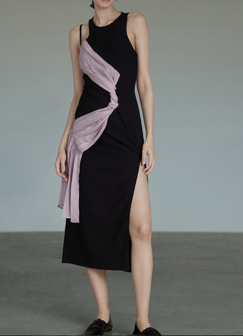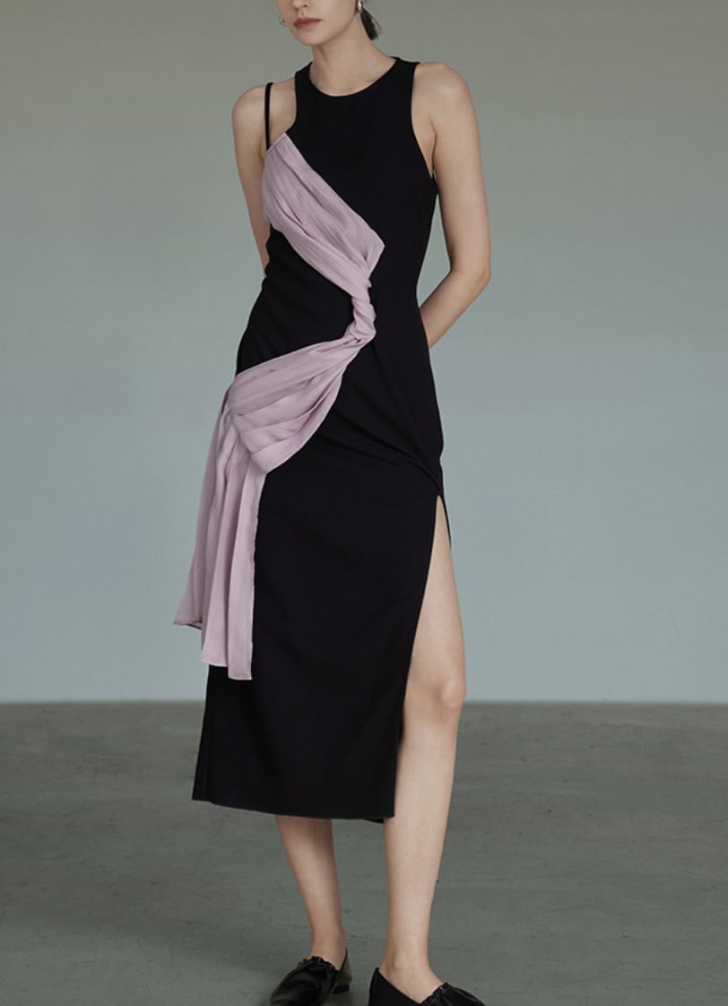 French ribbon asymmetrical design dress S1110