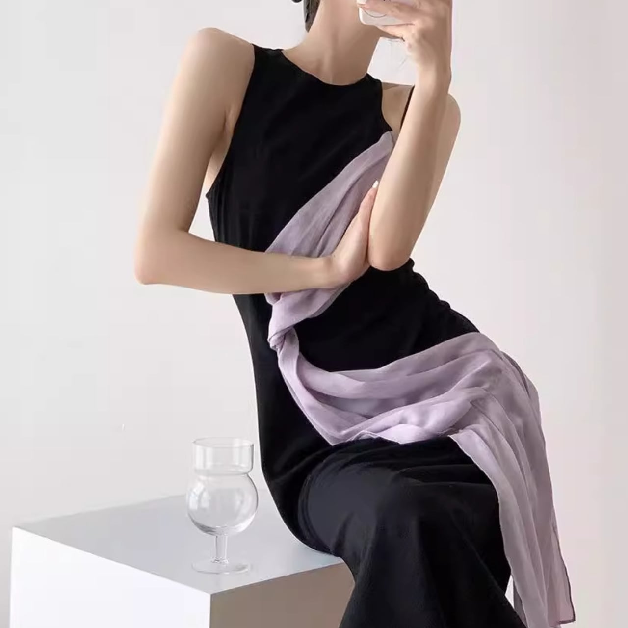 サイドスリットはエレガント感満載で、歩くたびに見える肌がセクシーな印象を与えます。ウエスト部分はスリミング効果のあるデザインで上半身を細く見せてくれます。