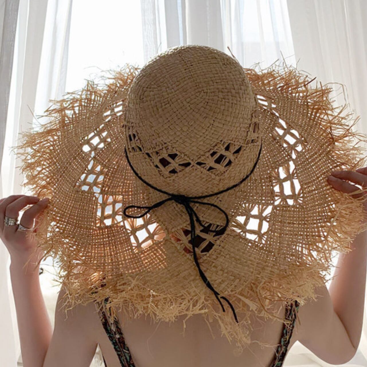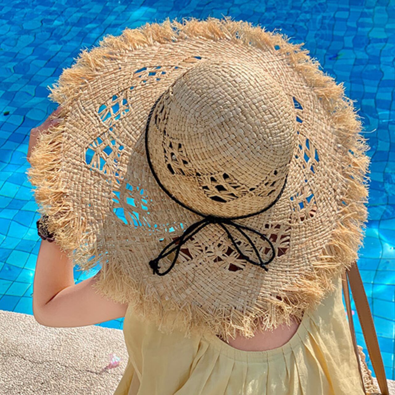 ゆったりとしたつばが強い日差しから肌を守りながら、フリンジエッジが風に揺れる度に洗練された女性らしさを演出します。ビーチや公園でのリラックスタイムにぴったりのアイテムで、スタイルを格上げしてくれます。