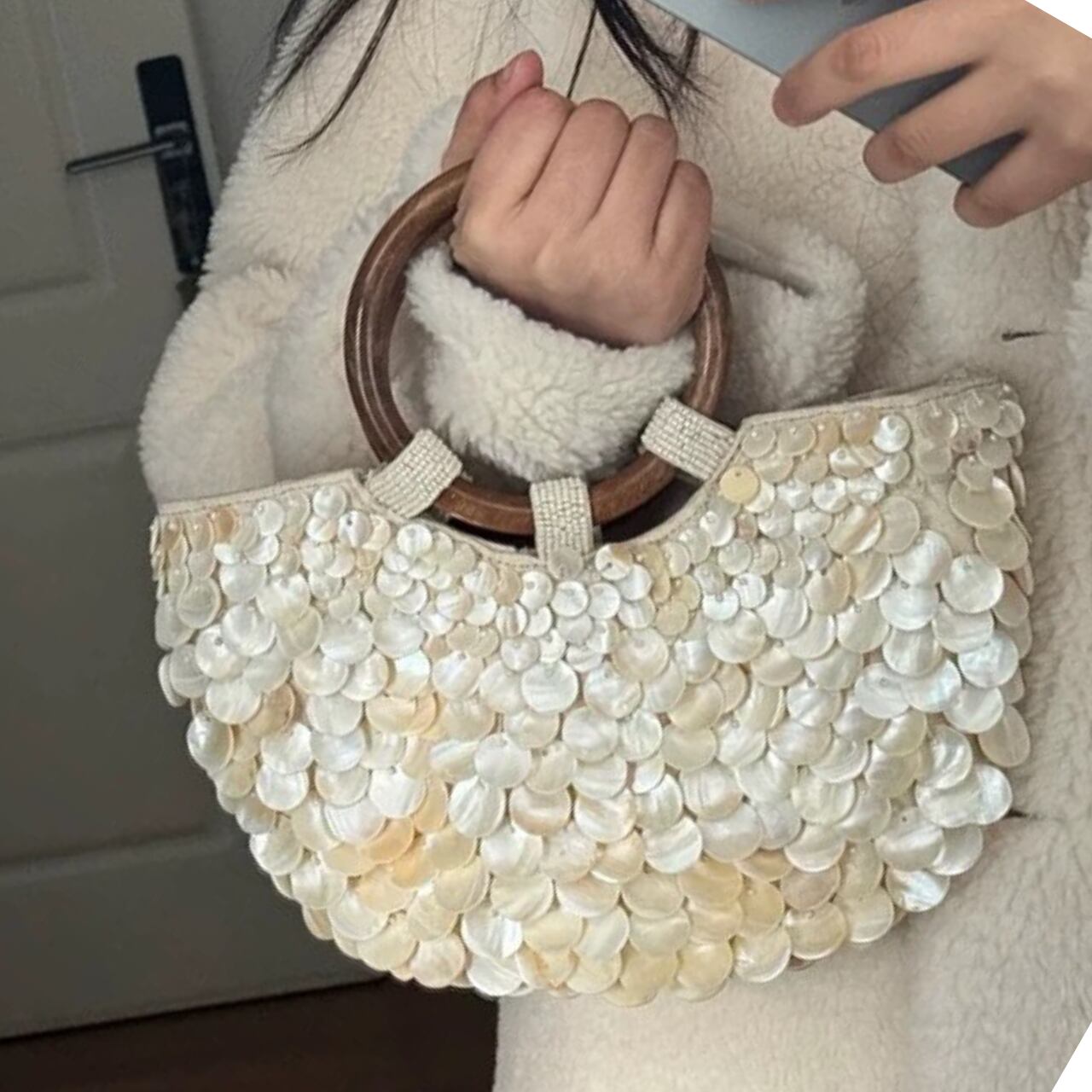 スパンコールで装飾されたシェル型のフォルムは、エレガントでありながらカジュアルな雰囲気も漂わせ、どんなシーンにもぴったり。