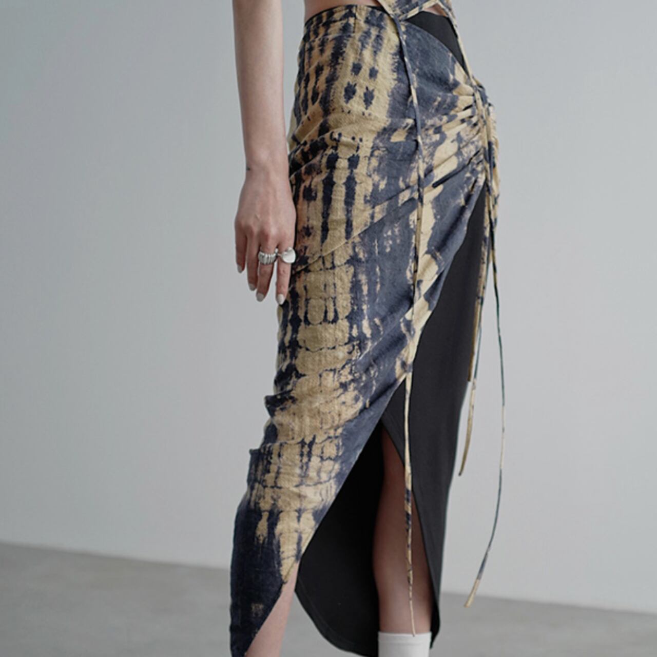 タイダイ柄 アシンメトリーラップスカート。