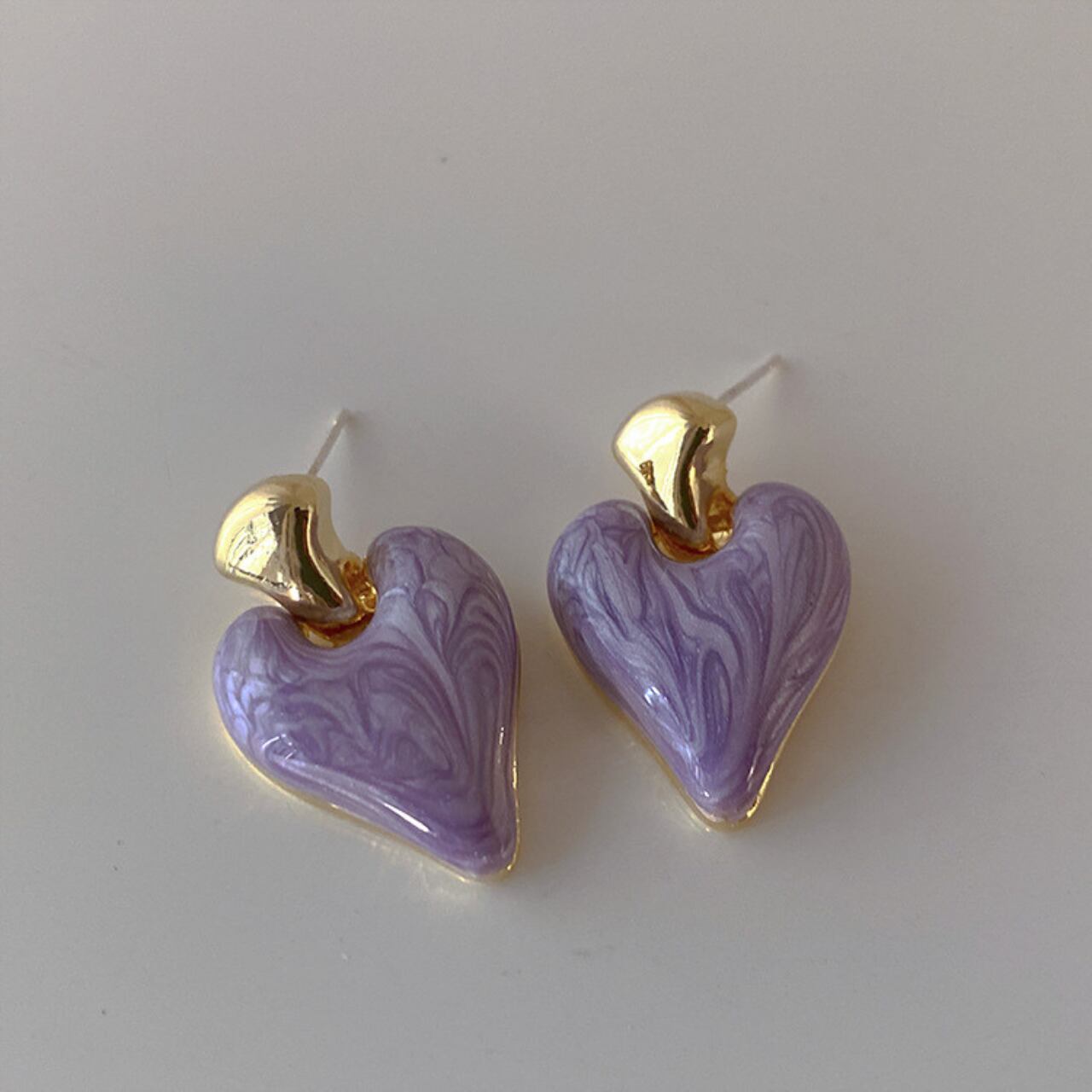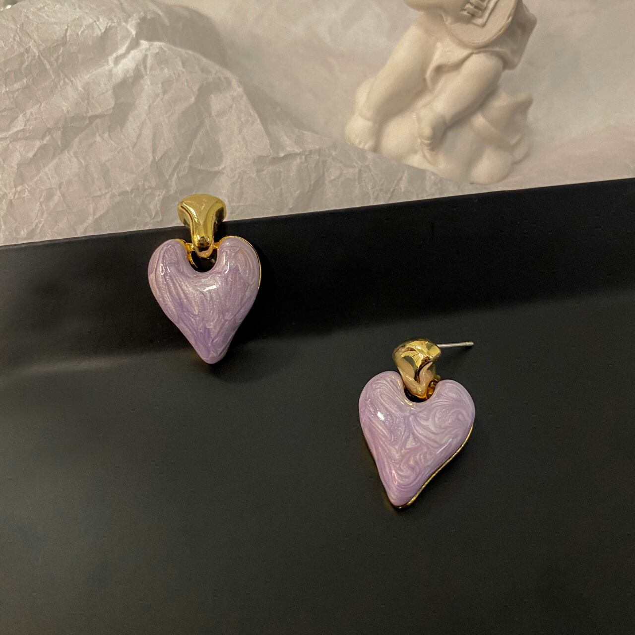 ゴールドの流線的なトップデザインから垂れ下がる、美しいマーブル模様のハートが印象的なドロップピアス。
