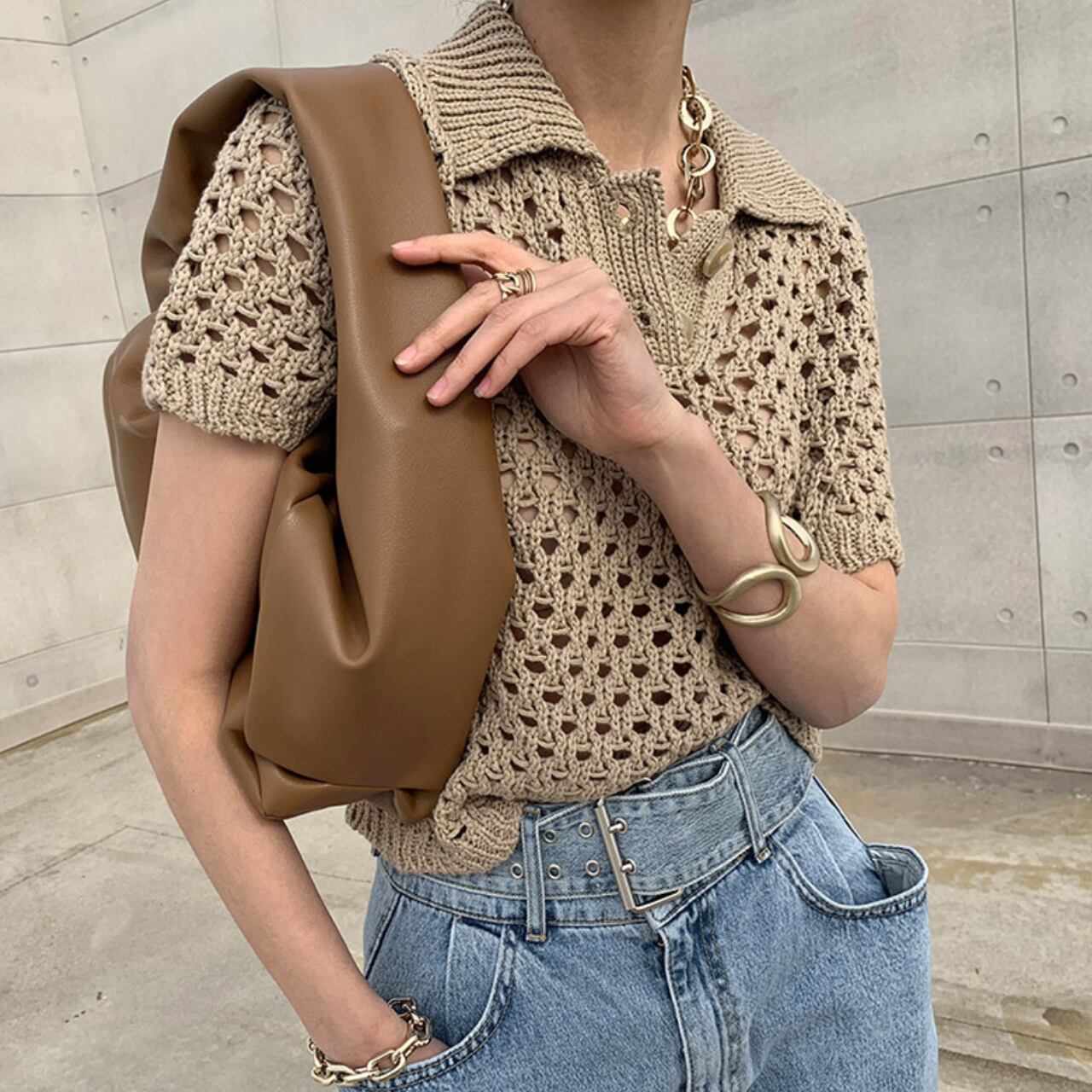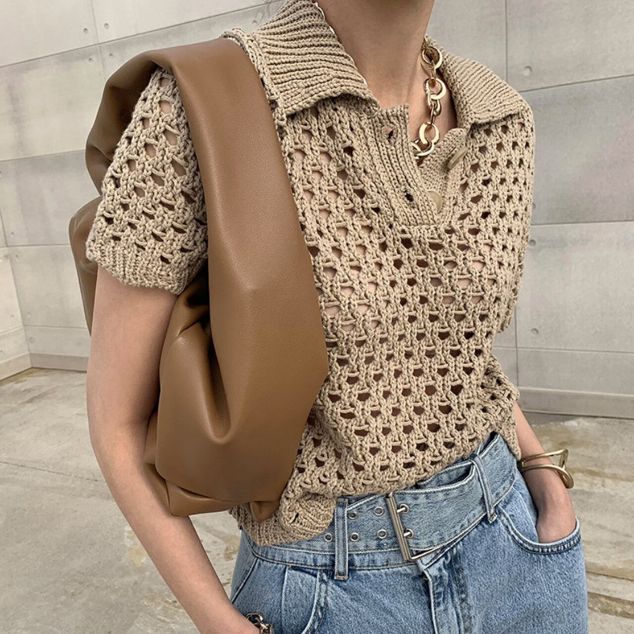 繊細なメッシュ編みが生み出すホローが、上品でありながらも程よい肌見せを演出。