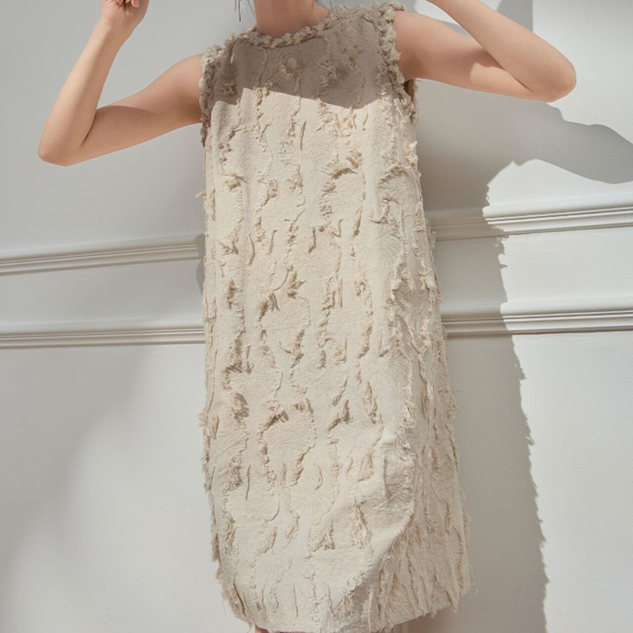 独特な3Dテクスチャーが目を惹くノースリーブワンピース。