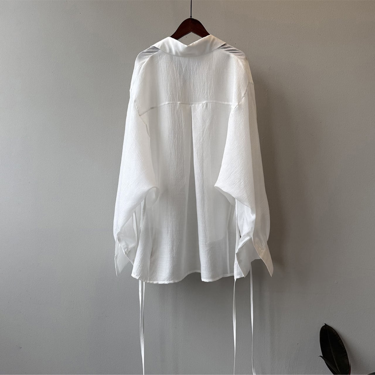 体型を美しくカバーしながら、こなれ感のあるスタイリングを実現します。袖まくりしても美しく決まる、計算されたシルエットデザインです。