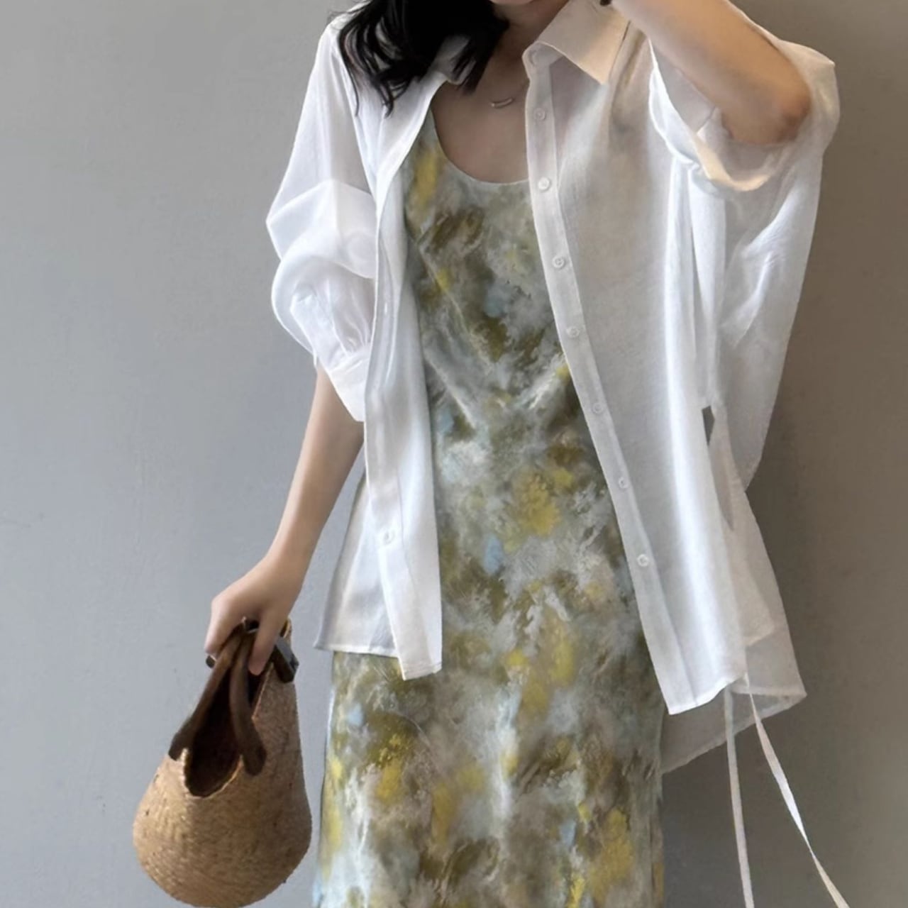 ・ワンピースの上から羽織ってエレガントなスタイル。