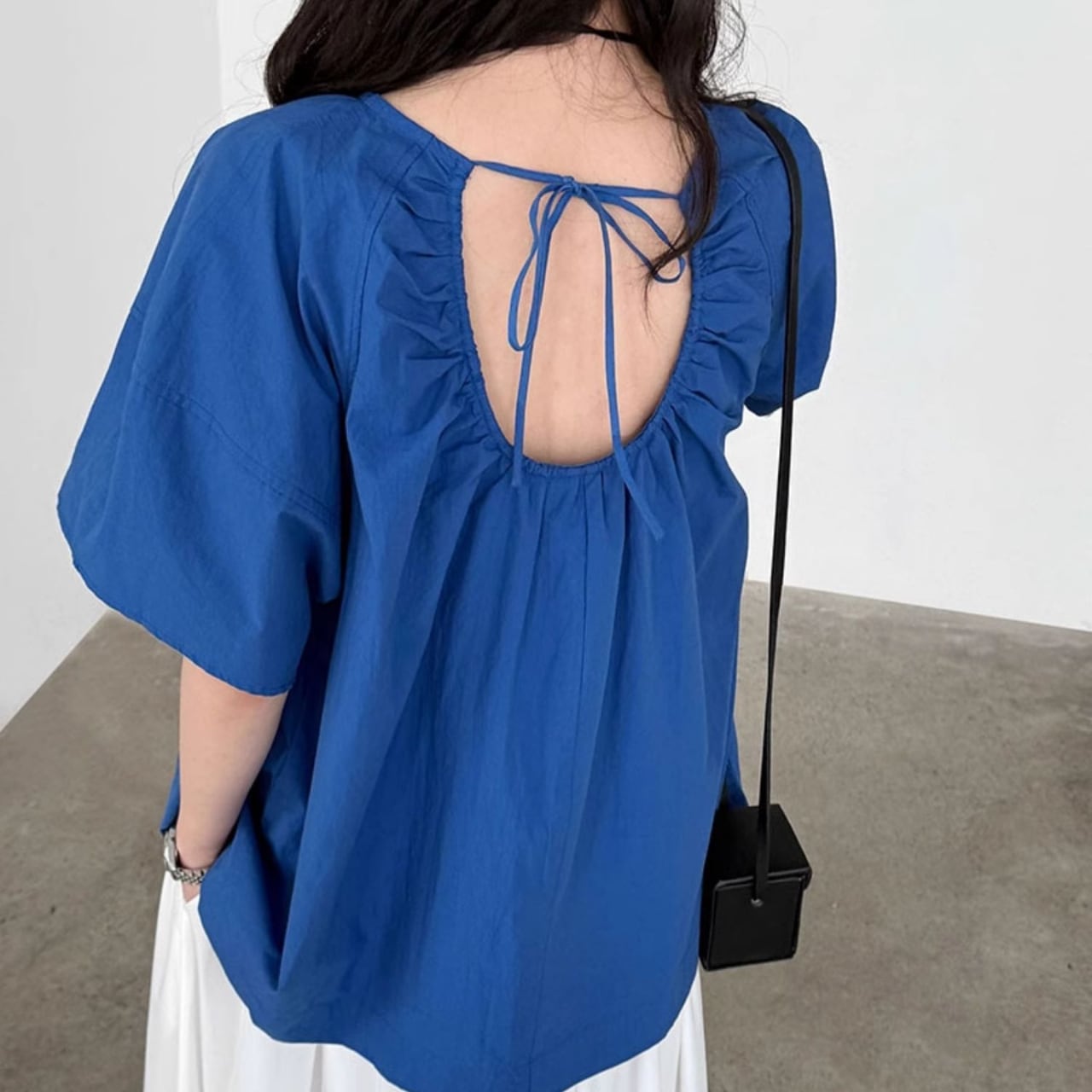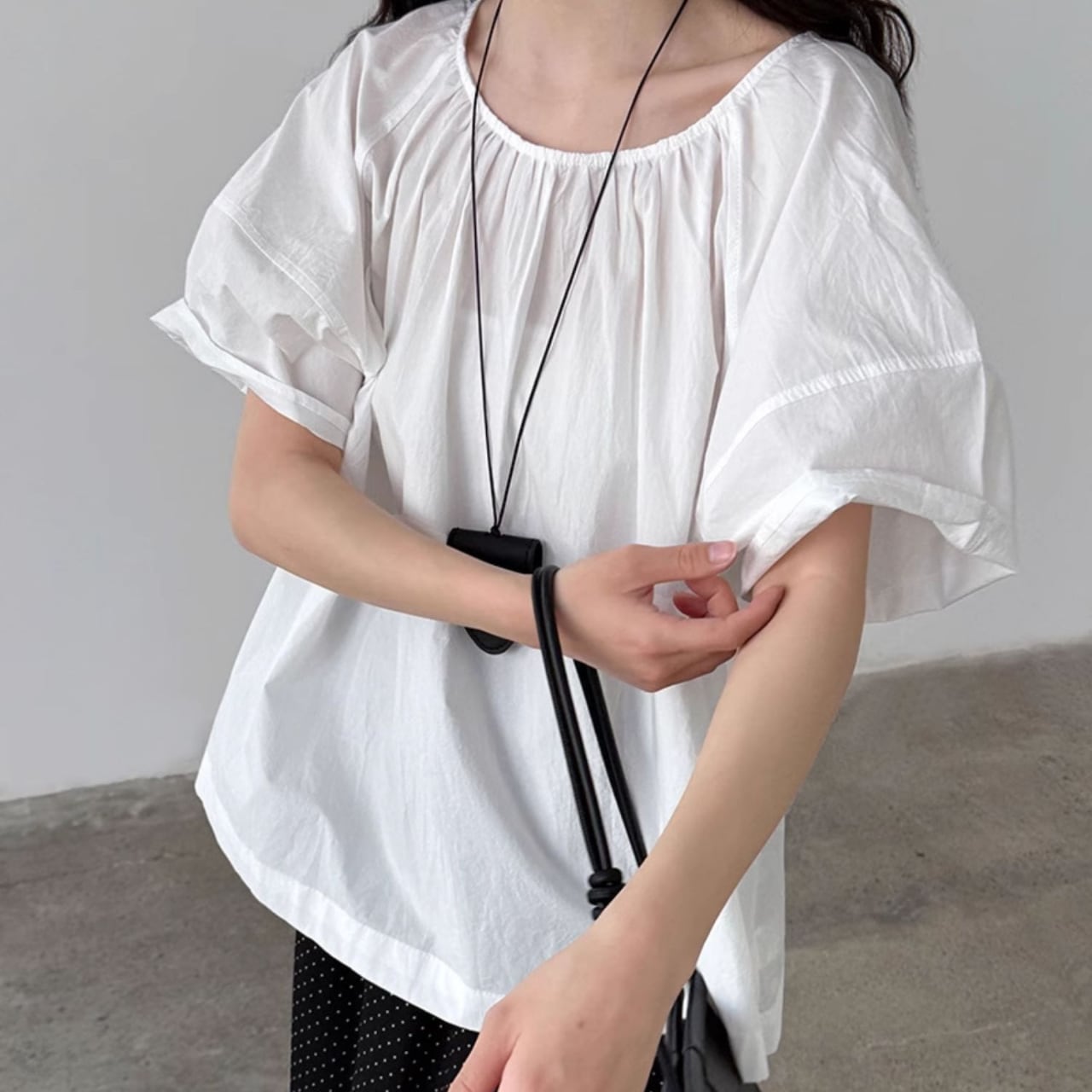 リラックス感のあるオーバーサイズデザインで、柔らかな生地感が体に心地よくフィット。軽やかで涼しげな印象を与えます。