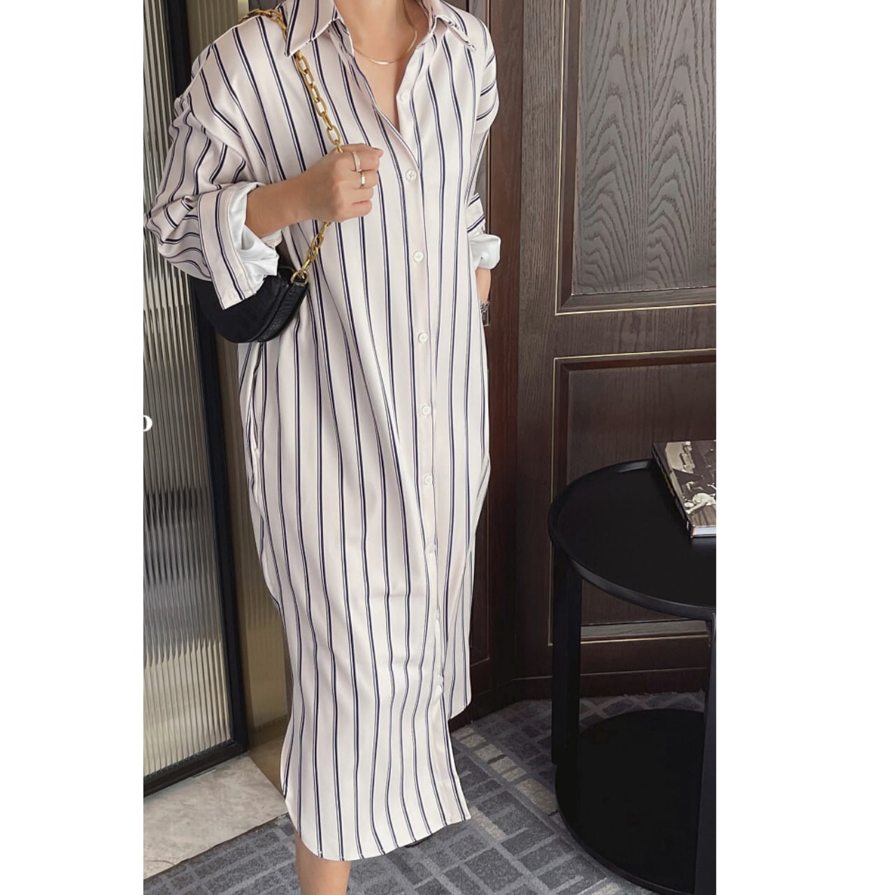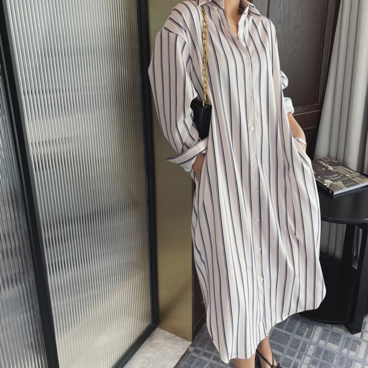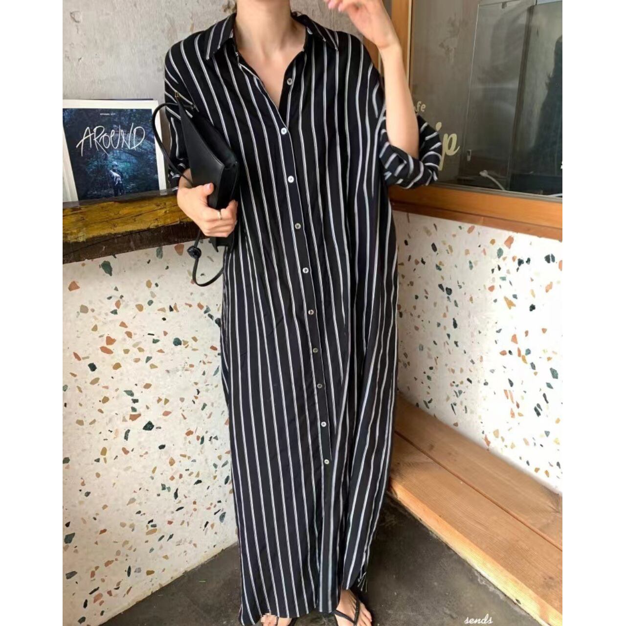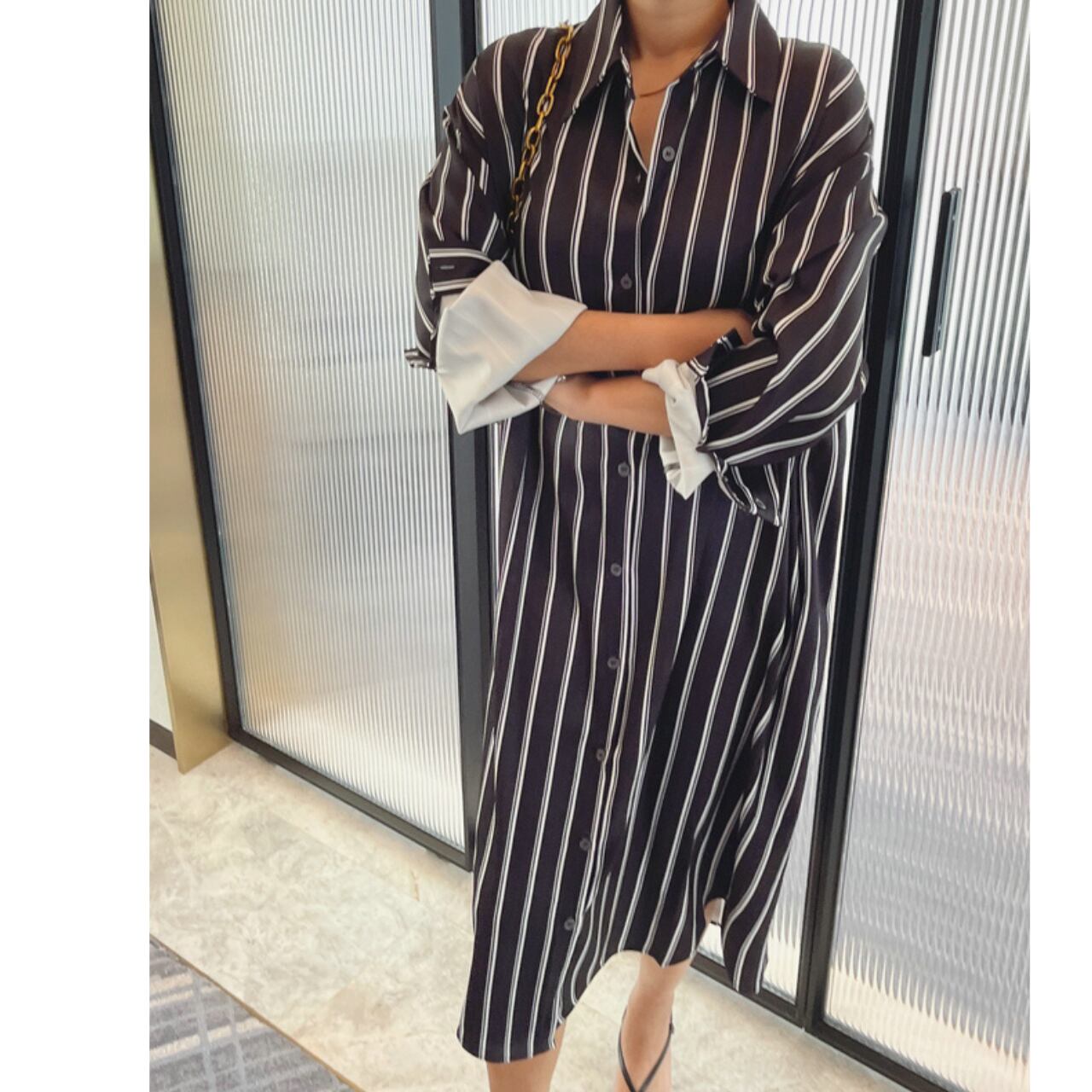 ゆとりのあるボディラインで体型を美しくカバー、マキシ丈で脚長効果と上品さを同時に実現します。