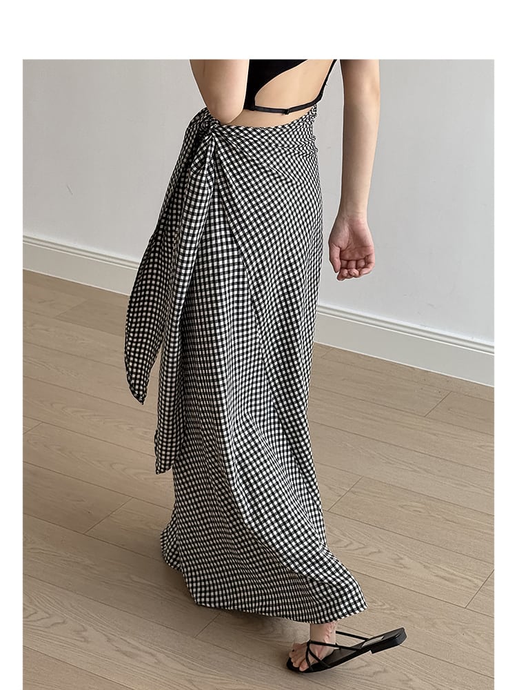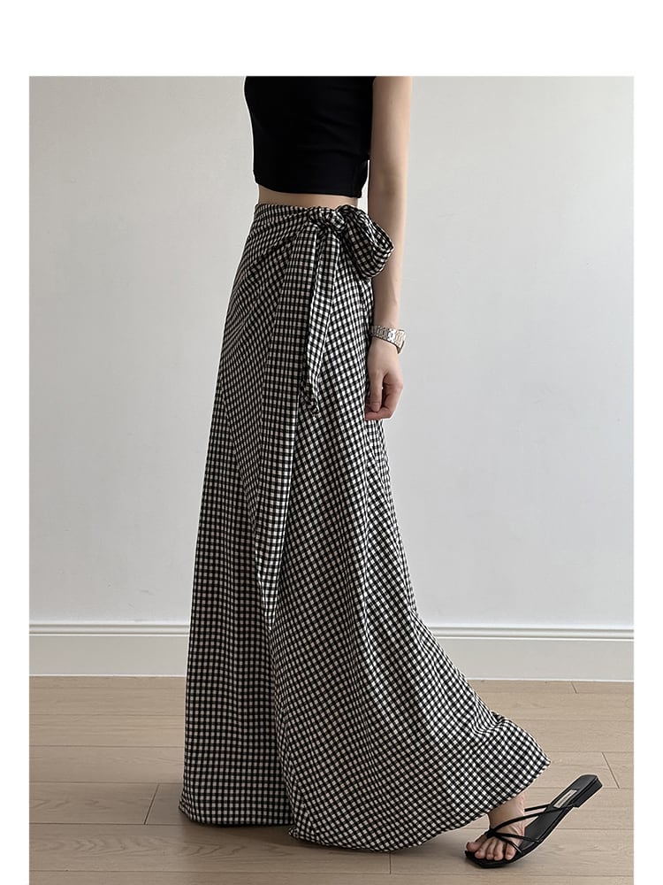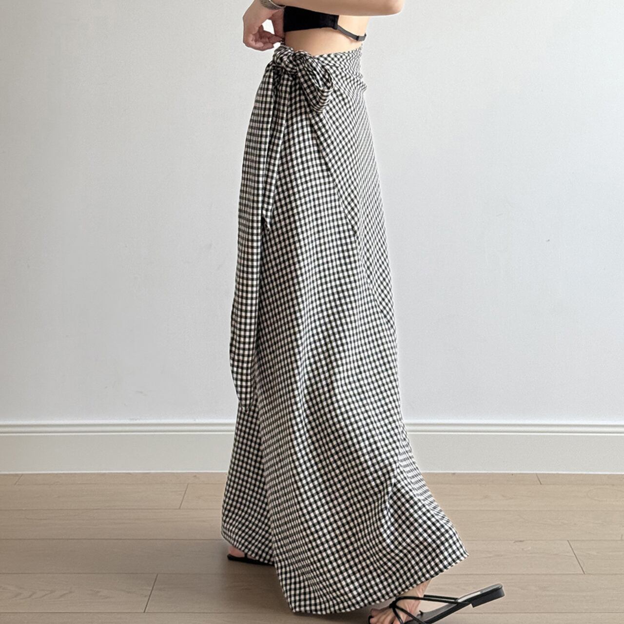 Gingham check side ribbon skirt S1239