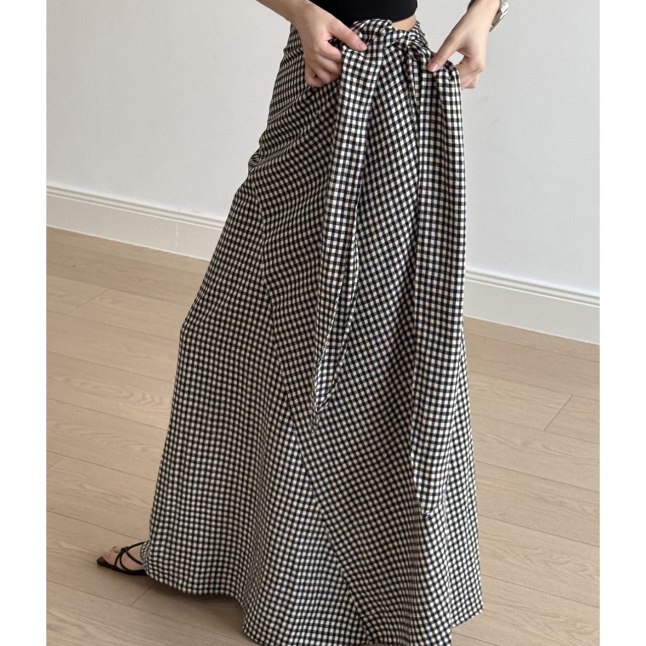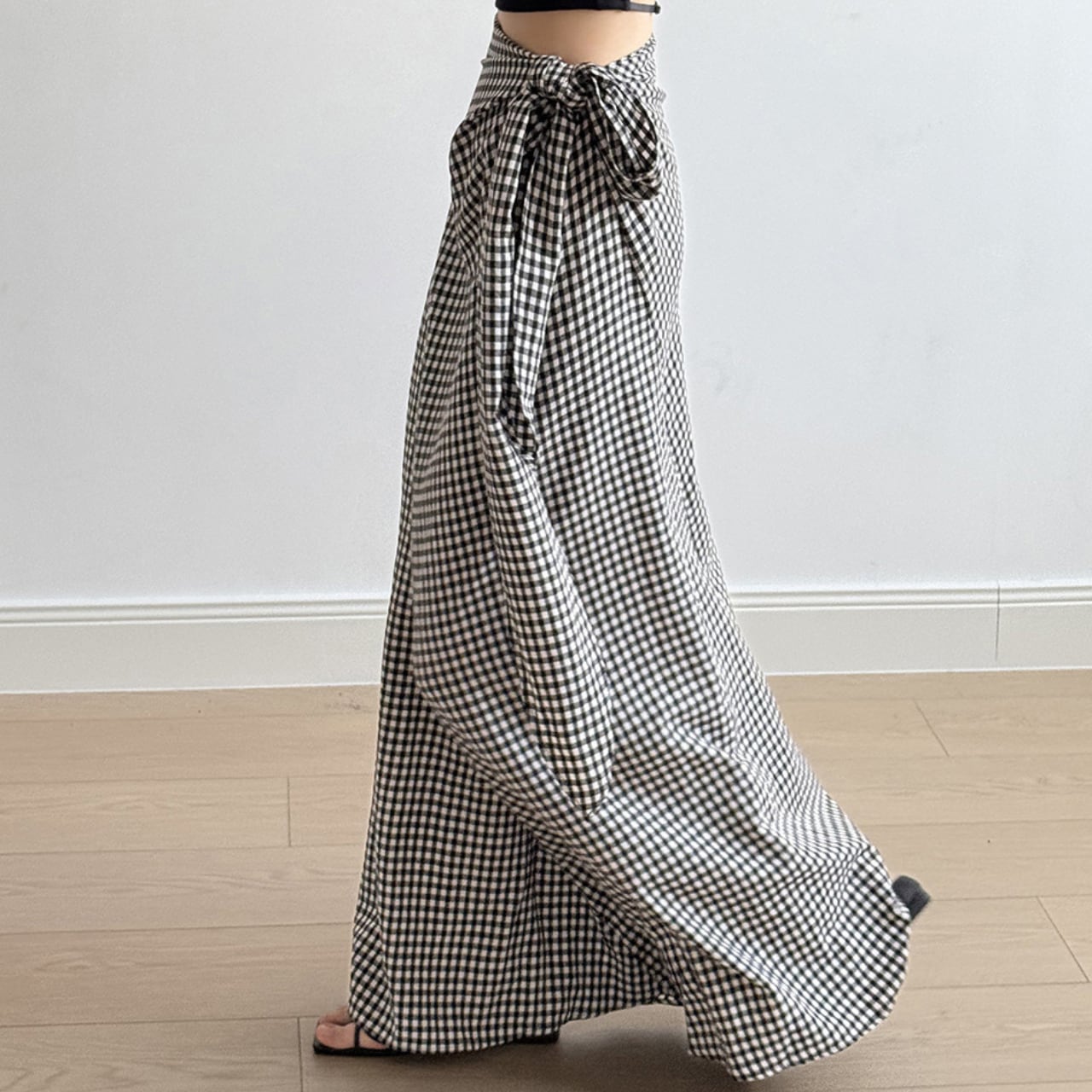 ギンガムチェックが可愛らしいサイドリボンスカート。