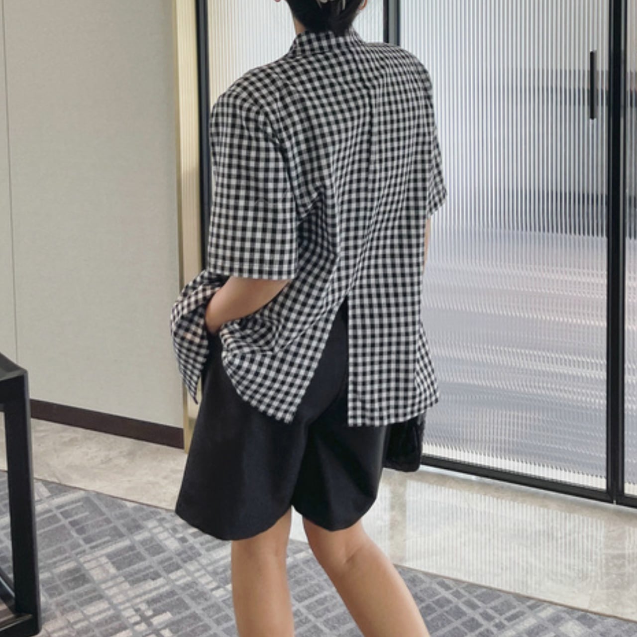 柔らかな素材感が心地よく、軽やかな着心地を実現。涼しげなデザインでありながら、しっかりとしたスタイルを演出してくれます。シンプルながらも、チェックのパターンがコーディネートにアクセントをプラスし、オシャレを楽しむことができます。