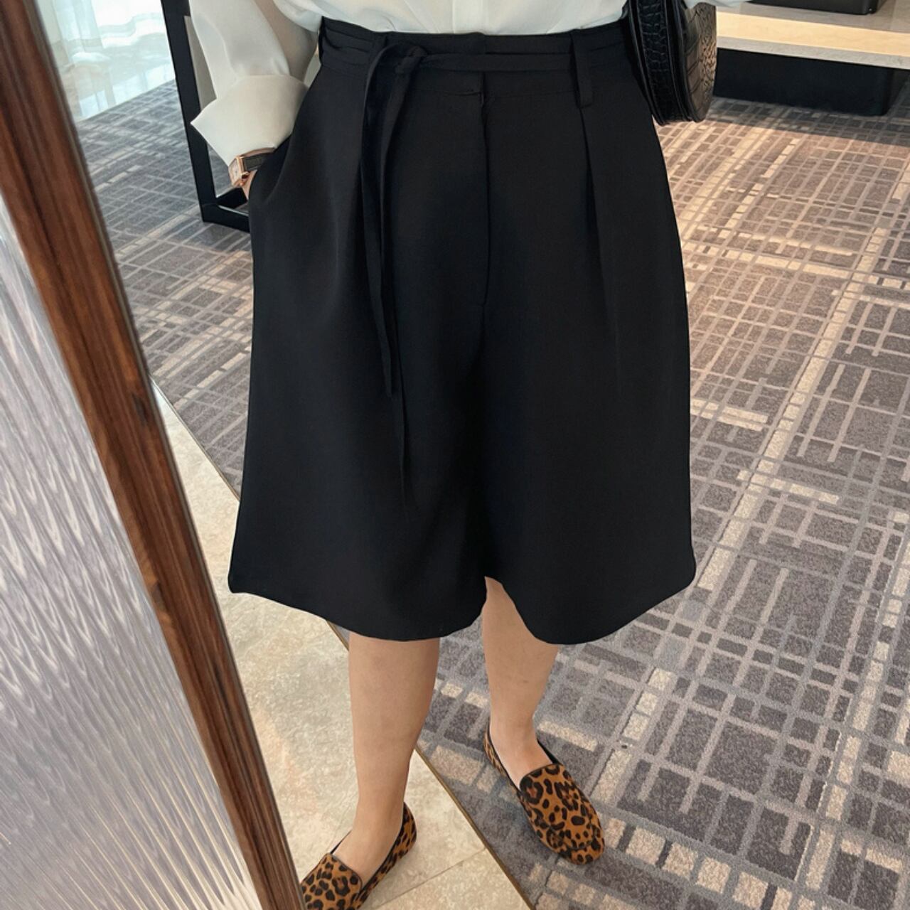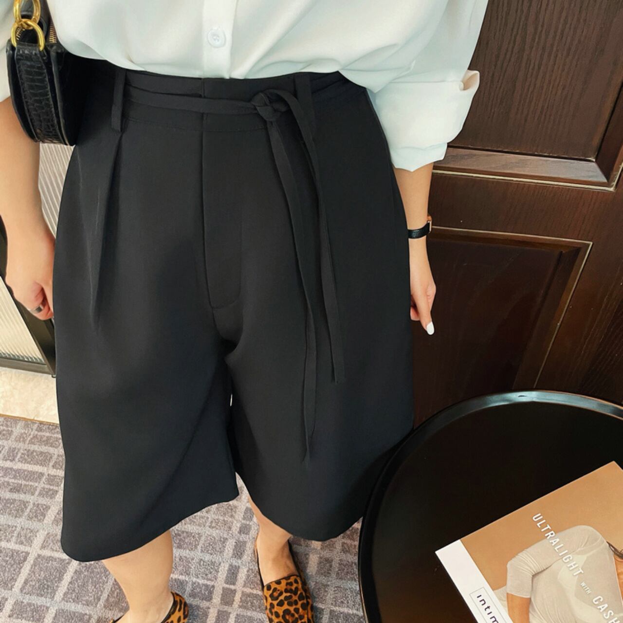 ・オーバーサイズのシャツを羽織ることで、トレンド感あふれるコーデに。