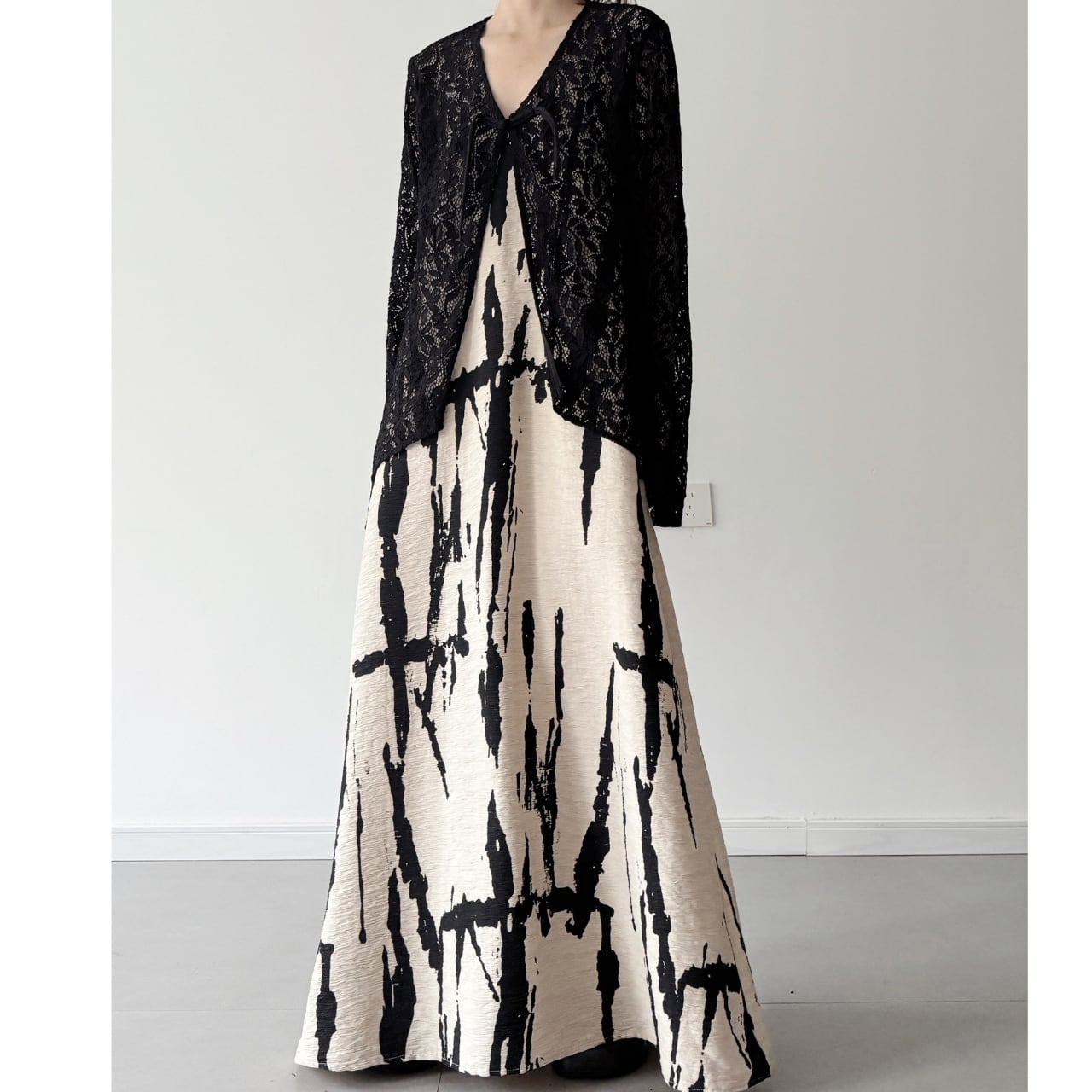 まるでキャンバスに描かれた抽象画のような独創的なデザインで、着る人を唯一無二の存在に演出します。