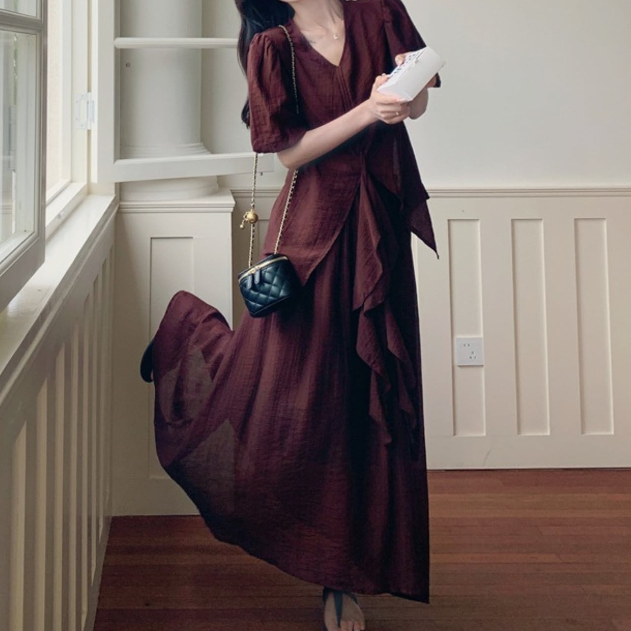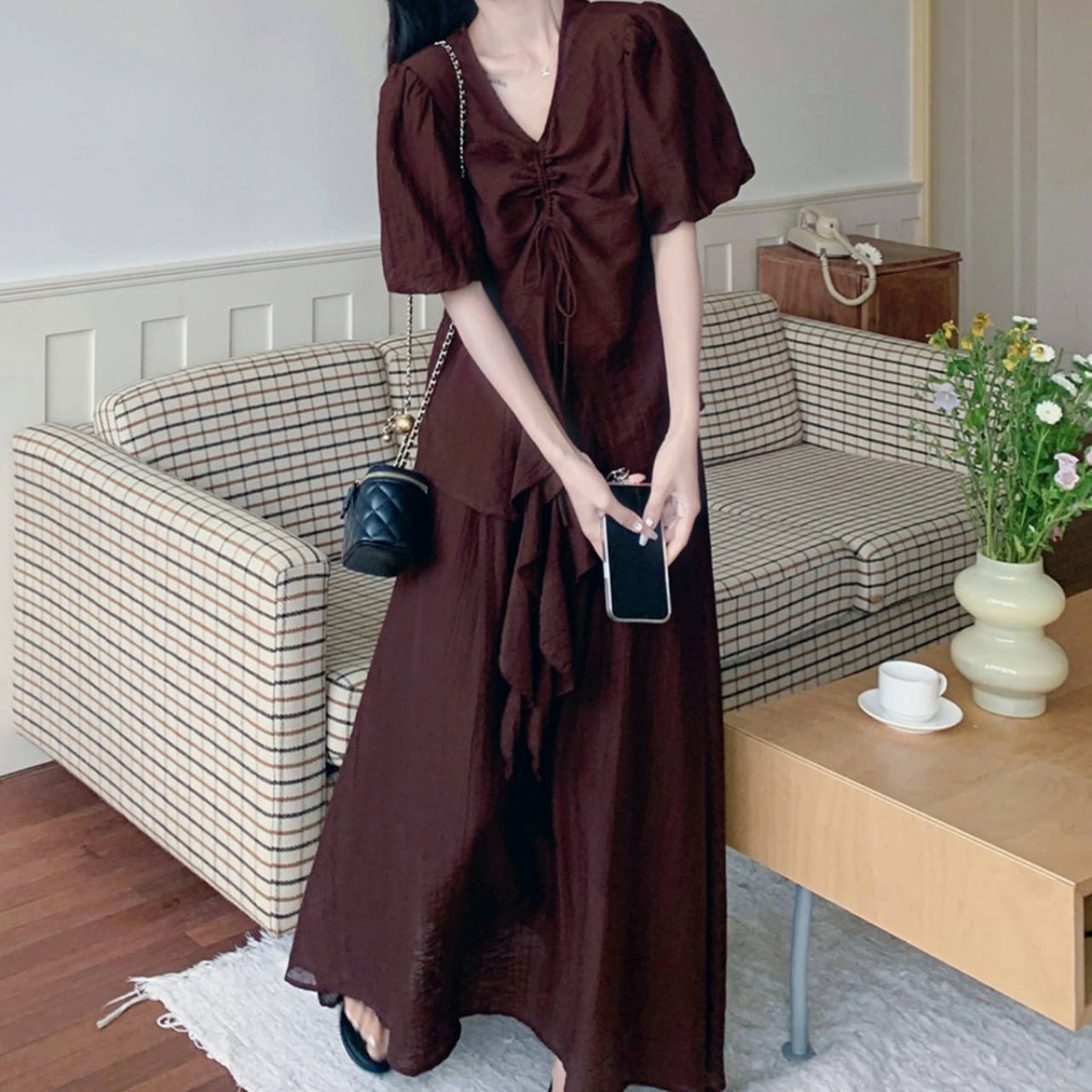 〜大人のエレガントスタイル〜 繊細なシフォン素材で仕立てた、ブラウス&スカートのセットアップ。 深いボルドー色が大人の品格を演出し、特別な日から日常使いまで幅広くお使いいただけます。 トップスはVネックデザインで 上品なデコルテラインを演出し、顔周りをすっきりと見せる効果も◎ トレンド感のある袖デザインで、フェミニンな印象をプラスします。 スカートは足首まで美しく流れるシルエット、歩く度に揺れるドレープが女性らしさを強調します。 上下ともに程よいシアー感で暑い季節でも快適にセットアップを楽しめます! ✔️おすすめのスタイリング ・フラットシューズと合わせて、デイリースタイルに。 ・ハンドバッグにヒールを加えて、特別な日のコーディネートとしてもおすすめ! ・ジャケットを羽織ってフォーマルなシーンでも◎ ■サイズ トップス XS 着丈:56cm 胸囲:84cm S 着丈:57cm 胸囲:88cm M 着丈:58cm 胸囲:92cm L 着丈:59cm 胸囲:96cm XL 着丈:60cm 胸囲:100cm スカート XS 着丈:88cm S 着丈:89cm M 着丈:90cm L 着丈:91cm XL 着丈:91cm ※採寸方法により1〜3cmの誤差がある場合がございます。 ■カラー ボルドー ■モデル 身長:163cm 体重:45kg Mサイズ着用 ■商品番号 S1267 ・・━━・・━━・・━━・・━━・・━━・・━━・・ 【お届けについて】 当ショップの商品は海外より取り寄せ・発送となりますので、ご入金から3〜4週間前後で発送いたします。 【お支払い方法について】 ・クレジットカード決済(VISA/Master/JCB/AMERICAN EXPRESS) ・キャリア決済(docomo/au/Softbank/Y!mobile) ・あと払い Pay ID決済 【注意事項】 ・商品の在庫切れや生産中止、生産遅延が生じる場合がありますので、ご了承ください。 ・こちらは輸入品となりますので、日本製品とは検品基準が異なることがあります。新品未使用品でもわずかな汚れや傷が見受けられる場合があります。 ・イメージ違いやサイズ・カラー相違による返品・交換はお断りしております。 ・お手持ちのスマートフォンやパソコンの液晶環境によって、商品のお色味が若干異なる可能性があります。 ・発送時期によりデザイン・素材・細部が変更される場合があります。 ご購入前にこちらをお読みください →https://solemy.base.shop/blog/2024/11/20/121101 ・・━━・・━━・・━━・・━━・・━━・・━━・・