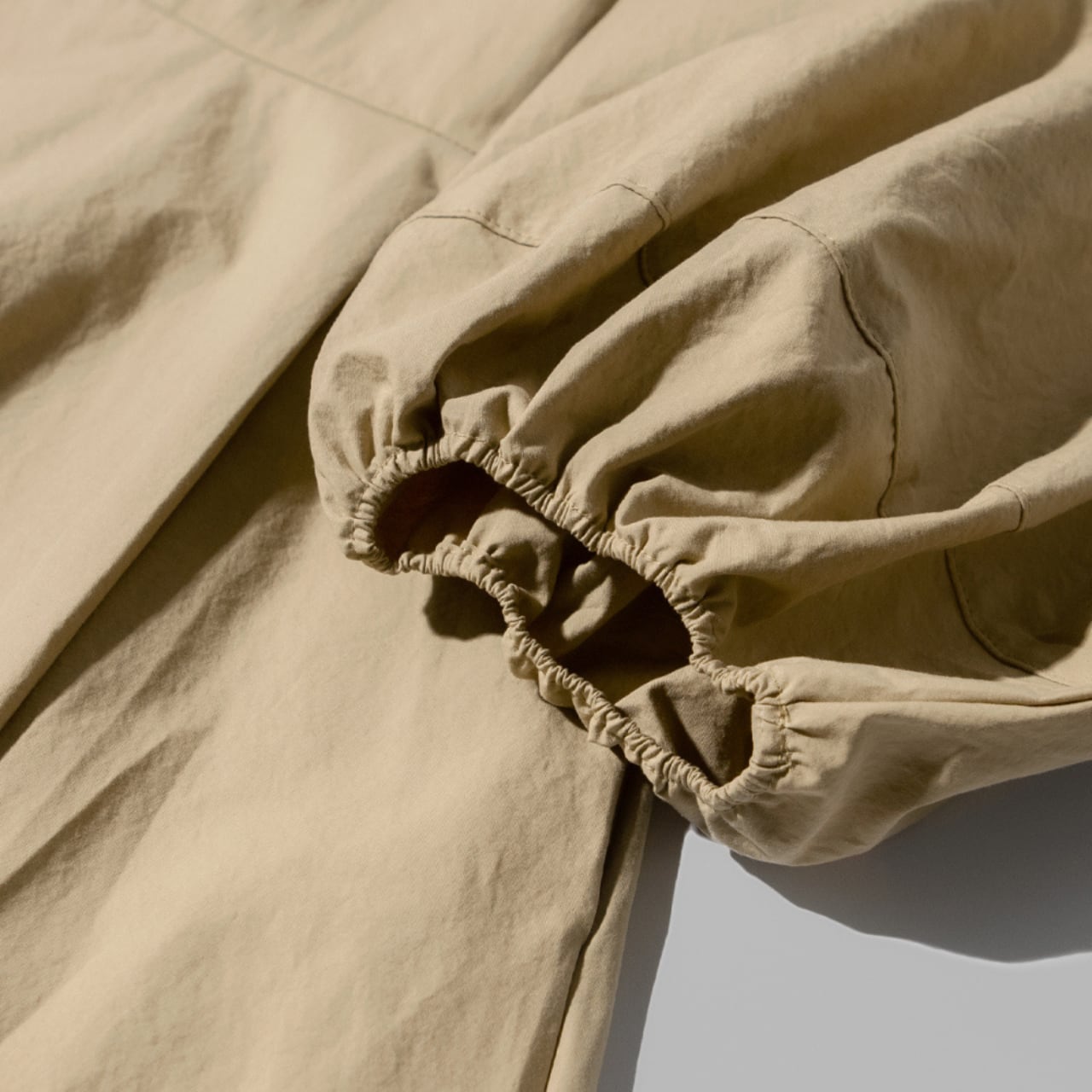 上半身に程よいボリュームを与え、ウエストラインを華奢に見せる効果を発揮。袖の分量感が絶妙で、甘すぎず洗練された印象を維持しています。