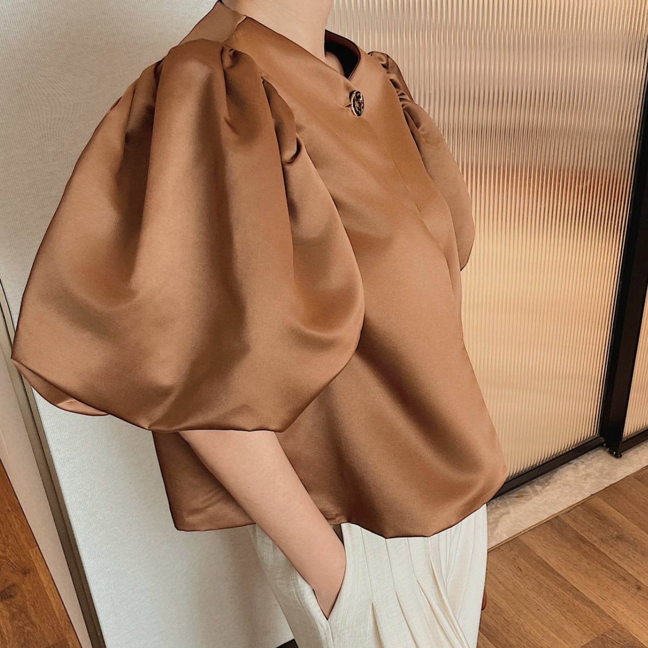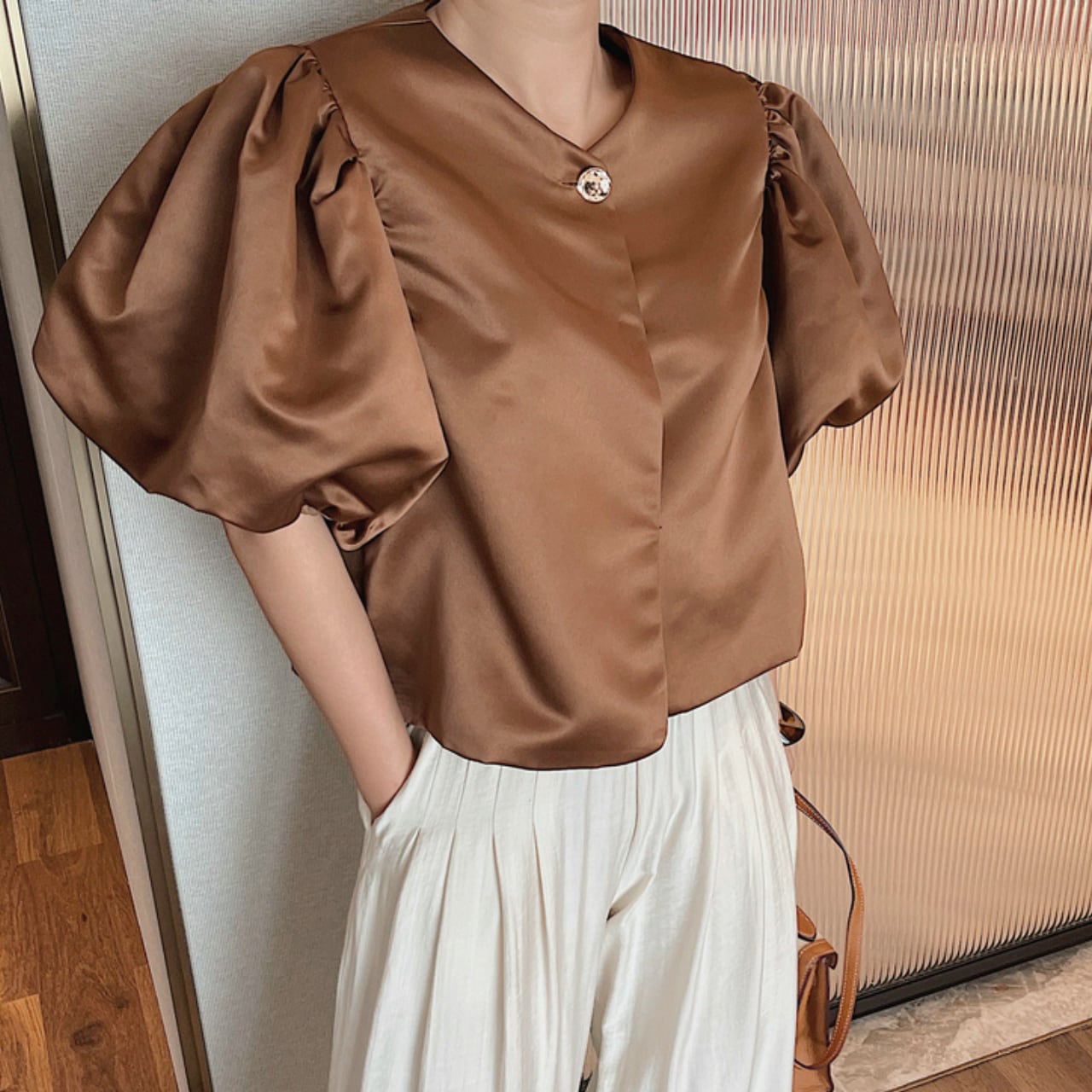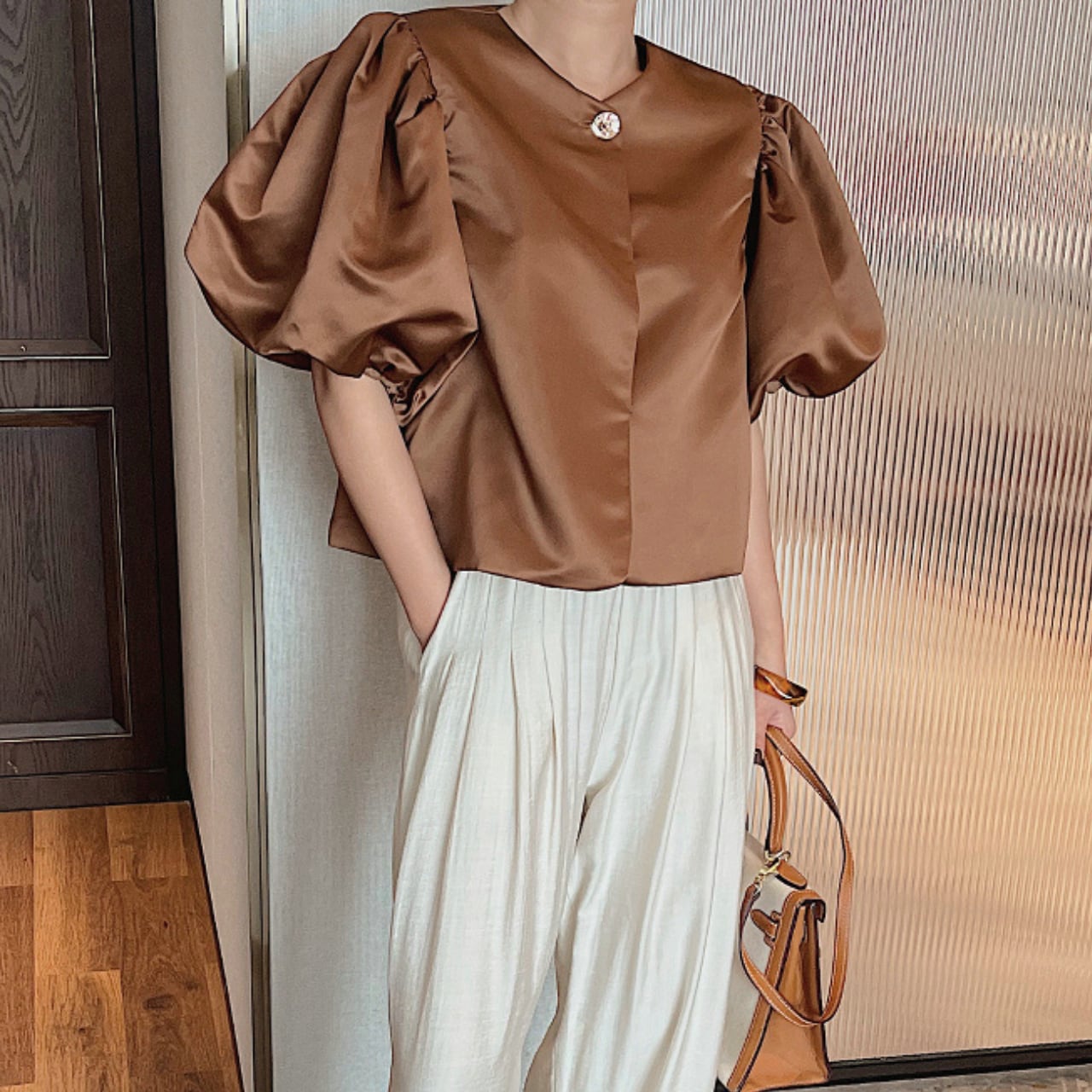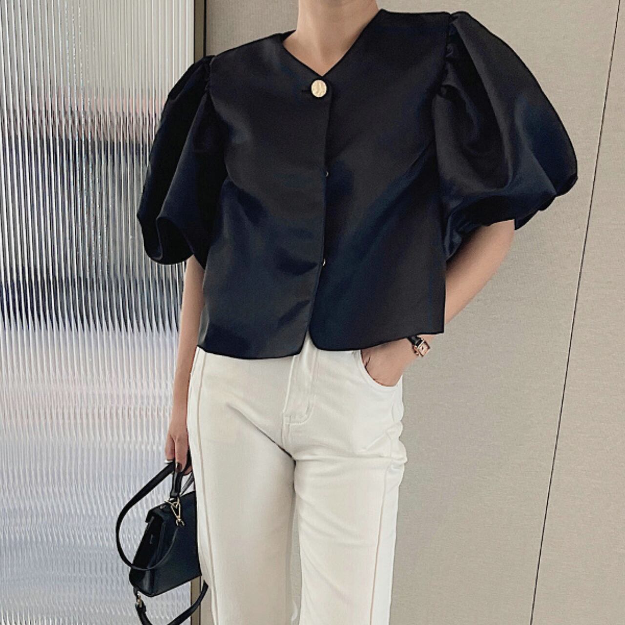 洗練されたデザインのパフスリーブトップス。