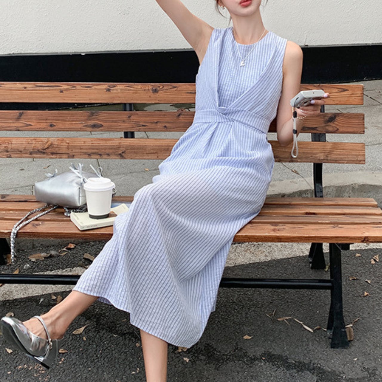 ブルーストライプのノースリーブワンピース。 洗練された縦縞の青と白のストライプに、ウエストのバックリボンデザインがスタイルを良く見せてくれます。 ゆるやかなAラインシェイプで体にリラックスしたフィット感。 すっきりとしたミニマルな仕上がりのクラシックなラウンドネックはフェイスラインを美しく見せてくれます。 一日中快適に過ごせる通気性のある素材で、暑い季節でも快適に過ごすことができます。 おすすめのスタイリング ・シンプルなサンダルを合わせて、リゾート感あふれるコーデに。 ・ジャケットを重ね着して、カジュアルな日常使いに。 ・アクセサリーをプラスすれば、パーティや特別なイベントにもぴったりなスタイルに早変わり。 ■サイズ XS 着丈:117cm 肩幅:37cm 胸囲:90cm S 着丈:118cm 肩幅:38cm 胸囲:94cm M 着丈:119cm 肩幅:39cm 胸囲:98cm L 着丈:120cm 肩幅:40cm 胸囲:102cm XL 着丈:121cm 肩幅:41cm 胸囲:106cm ※採寸方法により1〜3cmの誤差がある場合がございます。 ■カラー ブルー ■モデル 身長:165cm 体重:46kg Mサイズ着用 ■商品番号 S1287 ・・━━・・━━・・━━・・━━・・━━・・━━・・ 【お届けについて】 当ショップの商品は海外より取り寄せ・発送となりますので、ご入金から3〜4週間前後で発送いたします。 【お支払い方法について】 ・クレジットカード決済(VISA/Master/JCB/AMERICAN EXPRESS) ・キャリア決済(docomo/au/Softbank/Y!mobile) ・あと払い Pay ID決済 【注意事項】 ・商品の在庫切れや生産中止、生産遅延が生じる場合がありますので、ご了承ください。 ・こちらは輸入品となりますので、日本製品とは検品基準が異なることがあります。新品未使用品でもわずかな汚れや傷が見受けられる場合があります。 ・イメージ違いやサイズ・カラー相違による返品・交換はお断りしております。 ・お手持ちのスマートフォンやパソコンの液晶環境によって、商品のお色味が若干異なる可能性があります。 ・発送時期によりデザイン・素材・細部が変更される場合があります。 ご購入前にこちらをお読みください →https://solemy.base.shop/blog/2024/11/20/121101 ・・━━・・━━・・━━・・━━・・━━・・━━・・