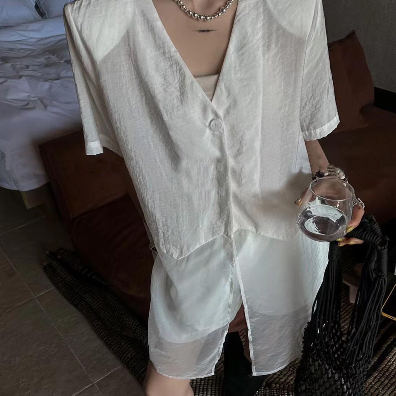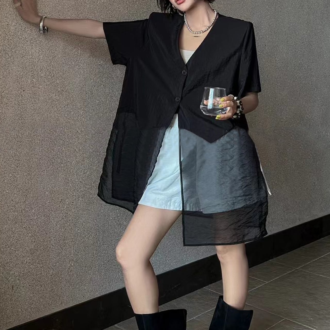 繊細なシアー素材が生み出す上品な透け感で、重たくなりがちなコーディネートに軽やかさをプラスします。肌が透けて見える程度の絶妙なバランスで、セクシーすぎず上品な印象を演出します。