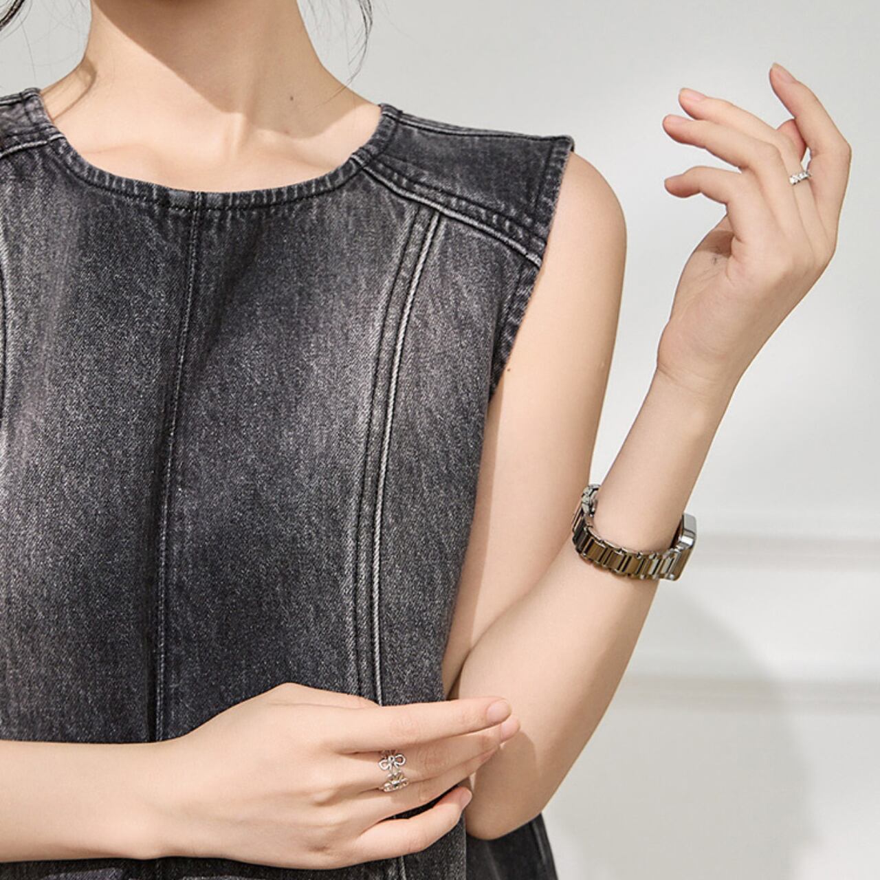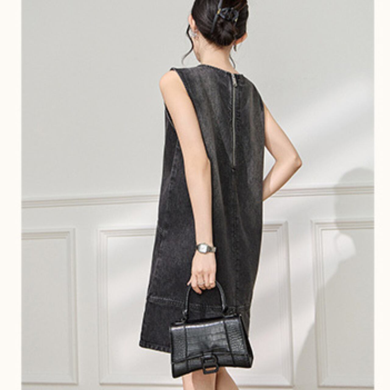 ヴィンテージ感あふれる絶妙なウォッシュ加工と、計算されたステッチワークが際立つ上質なデニムワンピース。カジュアルでありながら都会的な洗練さを兼ね備えた、大人の女性のためのアイテムです。