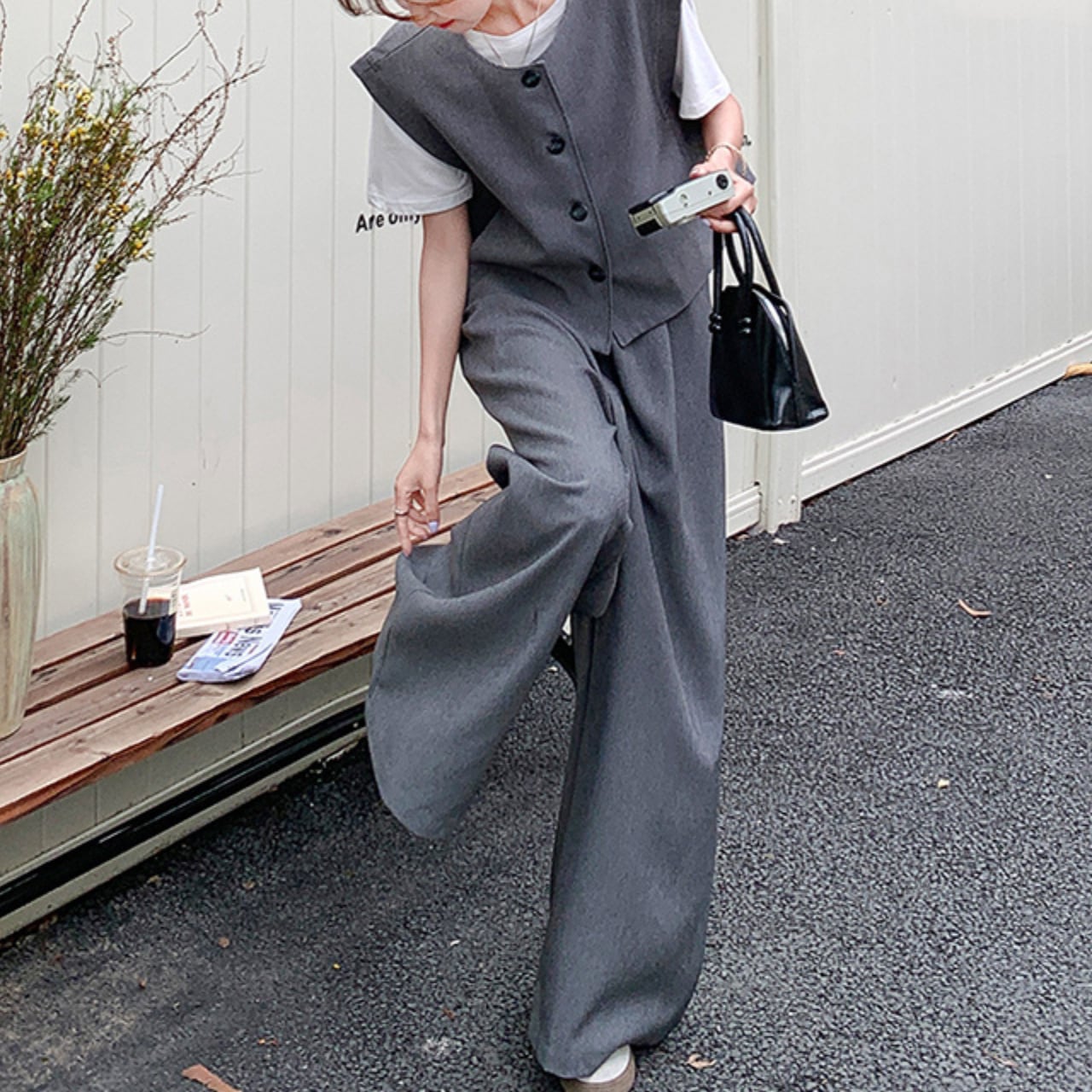グレーベスト&ワイドレッグパンツのセットアップ。 どんなアイテムとも相性抜群の絶妙なグレーカラーで、どんなシーンにも対応できるアイテムです。 ベストはクラシカルなボタンフロントで、上品さと今らしさを両立。Tシャツやブラウスと重ね着をしてコーディネートの幅が広がること間違いなしです。 ワイドレッグパンツは、ゆったりとしたシルエットで快適な履き心地と美しいドレープ感が魅力。 上下合わせることで、簡単にお出かけスタイルが決まる忙しい方に持ってこいのアイテムです。 おすすめのスタイリング ・ブラウスやシャツを重ね着して、上品なオフィススタイルに。 ・スニーカーやローファーで抜け感を演出。 ・アウターを羽織って、季節ごとのコーディネートも楽々です。 ■サイズ ベスト XS 着丈:46cm 胸囲:88cm S 着丈:47cm 胸囲:92cm M 着丈:48cm 胸囲:96cm L 着丈:49cm 胸囲:100cm XL 着丈:50cm 胸囲:104cm パンツ XS 着丈:98cm ウエスト:54cm S 着丈:99cm ウエスト:58cm M 着丈:100cm ウエスト:62cm L 着丈:101cm ウエスト:66cm XL 着丈:102cm ウエスト:70cm ※採寸方法により1〜3cmの誤差がある場合がございます。 ■カラー グレー ■モデル 身長:165cm 体重:46kg Mサイズ着用 ■商品番号 S1315 ・・━━・・━━・・━━・・━━・・━━・・━━・・ 【お届けについて】 当ショップの商品は海外より取り寄せ・発送となりますので、ご入金から3〜4週間前後で発送いたします。 【お支払い方法について】 ・クレジットカード決済(VISA/Master/JCB/AMERICAN EXPRESS) ・キャリア決済(docomo/au/Softbank/Y!mobile) ・あと払い Pay ID決済 【注意事項】 ・商品の在庫切れや生産中止、生産遅延が生じる場合がありますので、ご了承ください。 ・こちらは輸入品となりますので、日本製品とは検品基準が異なることがあります。新品未使用品でもわずかな汚れや傷が見受けられる場合があります。 ・イメージ違いやサイズ・カラー相違による返品・交換はお断りしております。 ・お手持ちのスマートフォンやパソコンの液晶環境によって、商品のお色味が若干異なる可能性があります。 ・発送時期によりデザイン・素材・細部が変更される場合があります。 ご購入前にこちらをお読みください →https://solemy.base.shop/blog/2024/11/20/121101 ・・━━・・━━・・━━・・━━・・━━・・━━・・