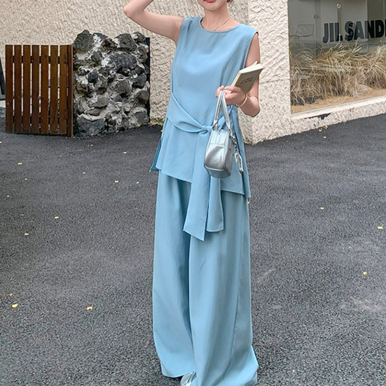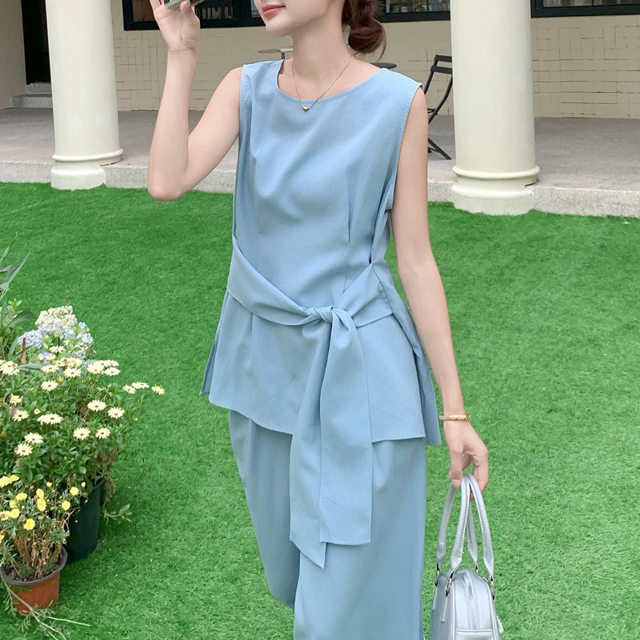 清涼感溢れるライトブルーカラーが美しいセットアップ。