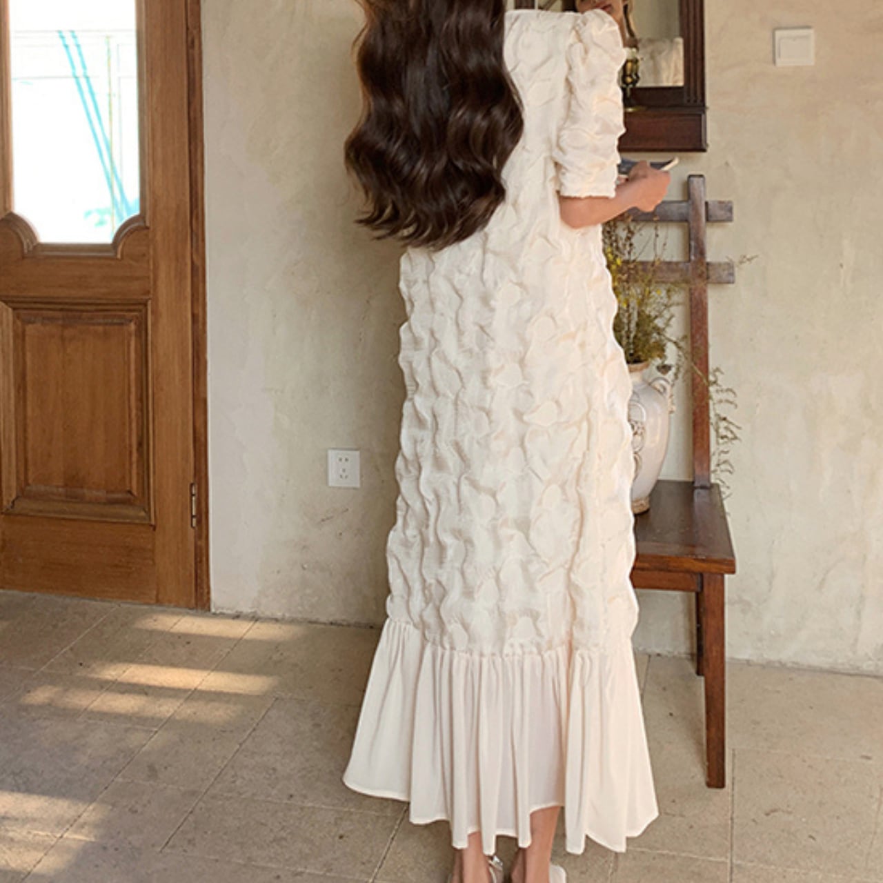 〜立体感で作る大人の余裕〜 ティアードデザインが美しいホワイトワンピース。 クラシックなパフスリーブが肩周りを華奢に見せ、女性らしいシルエットを実現します。 ロング丈で上品さと優雅さを両立し、ゆったりとしたリラックスフィットで体型を美しくカバーします。 裾部分の切り替えプリーツデザインもアクセントになっており、動くたびに揺れる裾が軽やかで上品な印象を与えます。 ✔️おすすめのスタイリング ・カジュアルなサンダルやスニーカーと合わせて、リラックスしたデイリースタイルを満喫。 ・アクセサリーやヒールをプラスすることで、特別な日のエレガントなコーディネートにも最適です。 ・デニムジャケットを羽織って、季節を問わず楽しめるスタイルにアレンジ。 ■サイズ XS 着丈:123cm 肩幅:37cm 胸囲:96cm 袖丈:33cm S 着丈:124cm 肩幅:38cm 胸囲:100cm 袖丈:34cm M 着丈:125cm 肩幅:39cm 胸囲:104cm 袖丈:35cm L 着丈:126cm 肩幅:40cm 胸囲:108cm 袖丈:36cm XL 着丈:127cm 肩幅:41cm 胸囲:112cm 袖丈:37cm ■カラー ホワイト ■モデル 身長:165cm 体重:45kg Mサイズ着用 ■商品番号 S1323 ・・━━・・━━・・━━・・━━・・━━・・━━・・ 【お届けについて】 当ショップの商品は海外より取り寄せ・発送となりますので、ご入金から3〜4週間前後で発送いたします。 【お支払い方法について】 ・クレジットカード決済(VISA/Master/JCB/AMERICAN EXPRESS) ・キャリア決済(docomo/au/Softbank/Y!mobile) ・あと払い Pay ID決済 【注意事項】 ・商品の在庫切れや生産中止、生産遅延が生じる場合がありますので、ご了承ください。 ・こちらは輸入品となりますので、日本製品とは検品基準が異なることがあります。新品未使用品でもわずかな汚れや傷が見受けられる場合があります。 ・イメージ違いやサイズ・カラー相違による返品・交換はお断りしております。 ・お手持ちのスマートフォンやパソコンの液晶環境によって、商品のお色味が若干異なる可能性があります。 ・発送時期によりデザイン・素材・細部が変更される場合があります。 ご購入前にこちらをお読みください →https://solemy.base.shop/blog/2024/11/20/121101 ・・━━・・━━・・━━・・━━・・━━・・━━・・