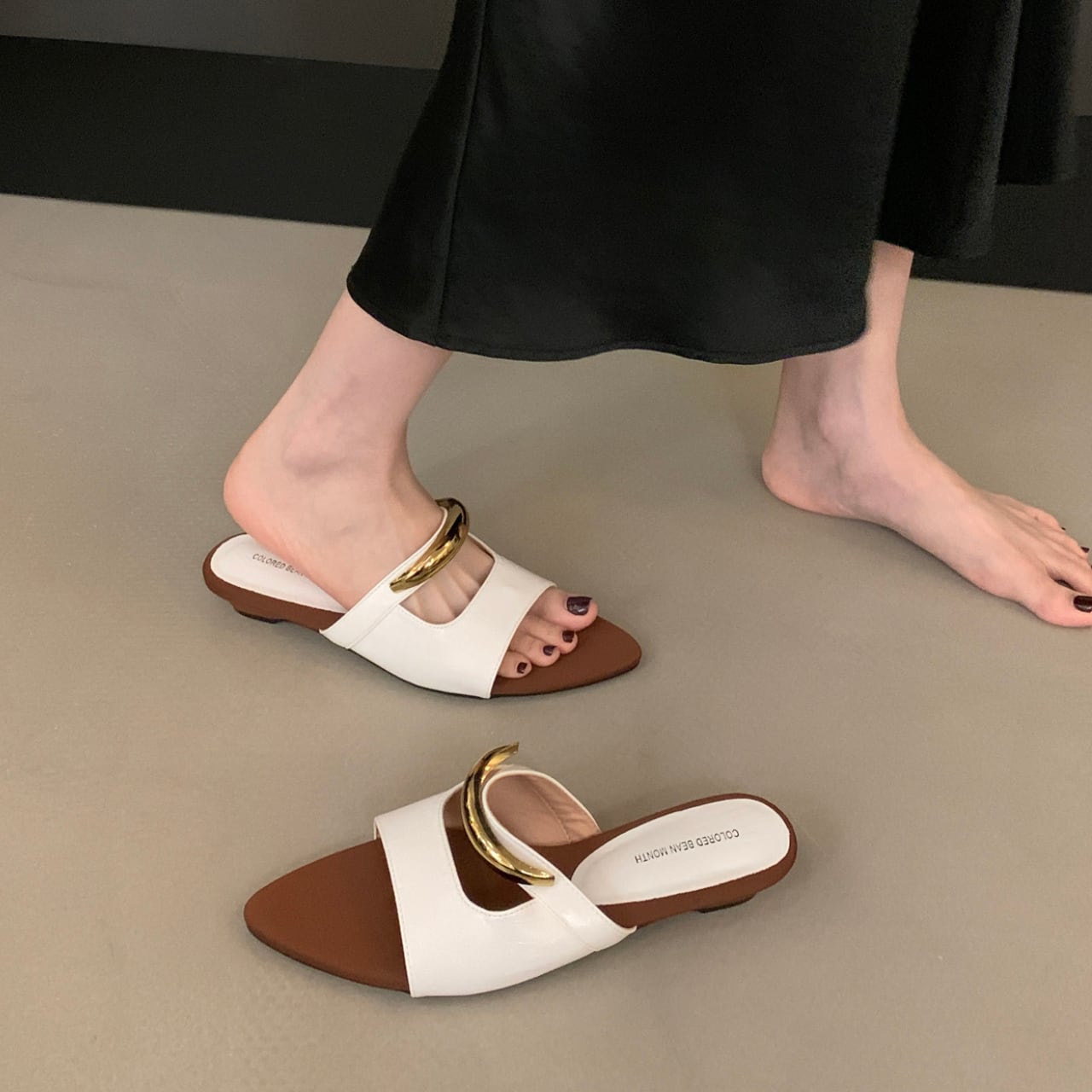 〜足元で作る大人の抜け感〜 エレガントでスタイリッシュなメタルバックルスリッパ。 上品なポインテッドトゥデザインで、 足先を美しく見せる洗練されたシルエットとなっています。 ゴールドの装飾が高級感を演出し、ミニマルなストラップが足の甲を優雅に包み込むシンプルで上品なデザインです。 さまざまなスタイルにマッチするデザインは、デイリーユースから特別な日のお出かけまで幅広く活躍します。 足に優しいフィット感と、軽やかな履き心地が魅力です。 ✔️おすすめのスタイリング ・カジュアルなジーンズと合わせて、デイリースタイルを楽しむ。 ・マキシドレスに合わせて、リゾート感を演出。 ・バックルと合わせてゴールドアクセサリーで華やかさをプラス。 ■サイズ 35 22.5cm 36 23cm 37 23.5cm 38 24cm 39 24.5cm ヒールの高さ:約3cm ■カラー ・ブラック ・ゴールド ・ホワイト ■商品番号 S1334 ・・━━・・━━・・━━・・━━・・━━・・━━・・ 【お届けについて】 当ショップの商品は海外より取り寄せ・発送となりますので、ご入金から3〜4週間前後で発送いたします。 【お支払い方法について】 ・クレジットカード決済(VISA/Master/JCB/AMERICAN EXPRESS) ・キャリア決済(docomo/au/Softbank/Y!mobile) ・あと払い Pay ID決済 【注意事項】 ・商品の在庫切れや生産中止、生産遅延が生じる場合がありますので、ご了承ください。 ・こちらは輸入品となりますので、日本製品とは検品基準が異なることがあります。新品未使用品でもわずかな汚れや傷が見受けられる場合があります。 ・イメージ違いやサイズ・カラー相違による返品・交換はお断りしております。 ・お手持ちのスマートフォンやパソコンの液晶環境によって、商品のお色味が若干異なる可能性があります。 ・発送時期によりデザイン・素材・細部が変更される場合があります。 ご購入前にこちらをお読みください →https://solemy.base.shop/blog/2024/11/20/121101 ・・━━・・━━・・━━・・━━・・━━・・━━・・