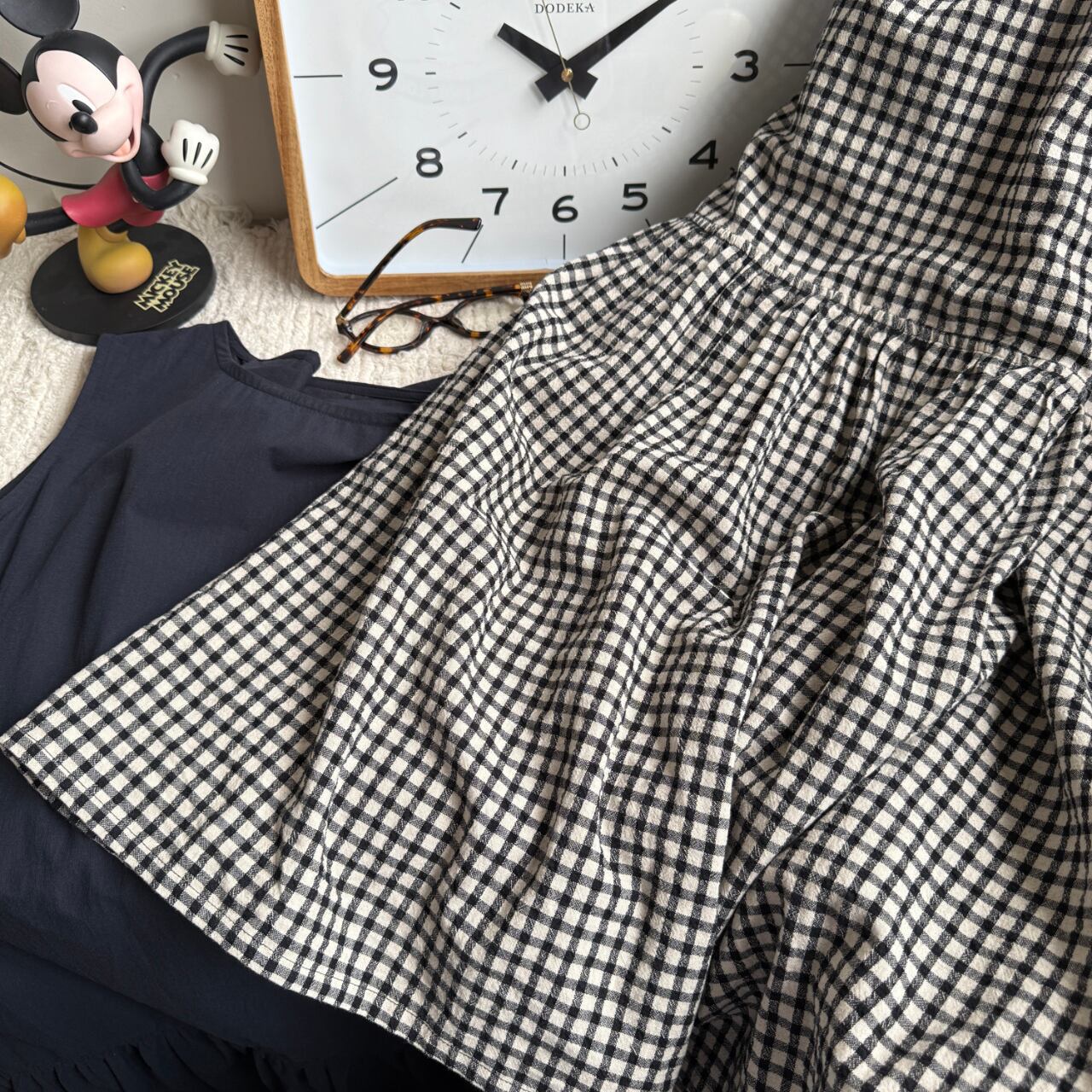 洗練されたモノトーンのギンガムチェック柄が、日常のスタイルに華やかさを加えます。