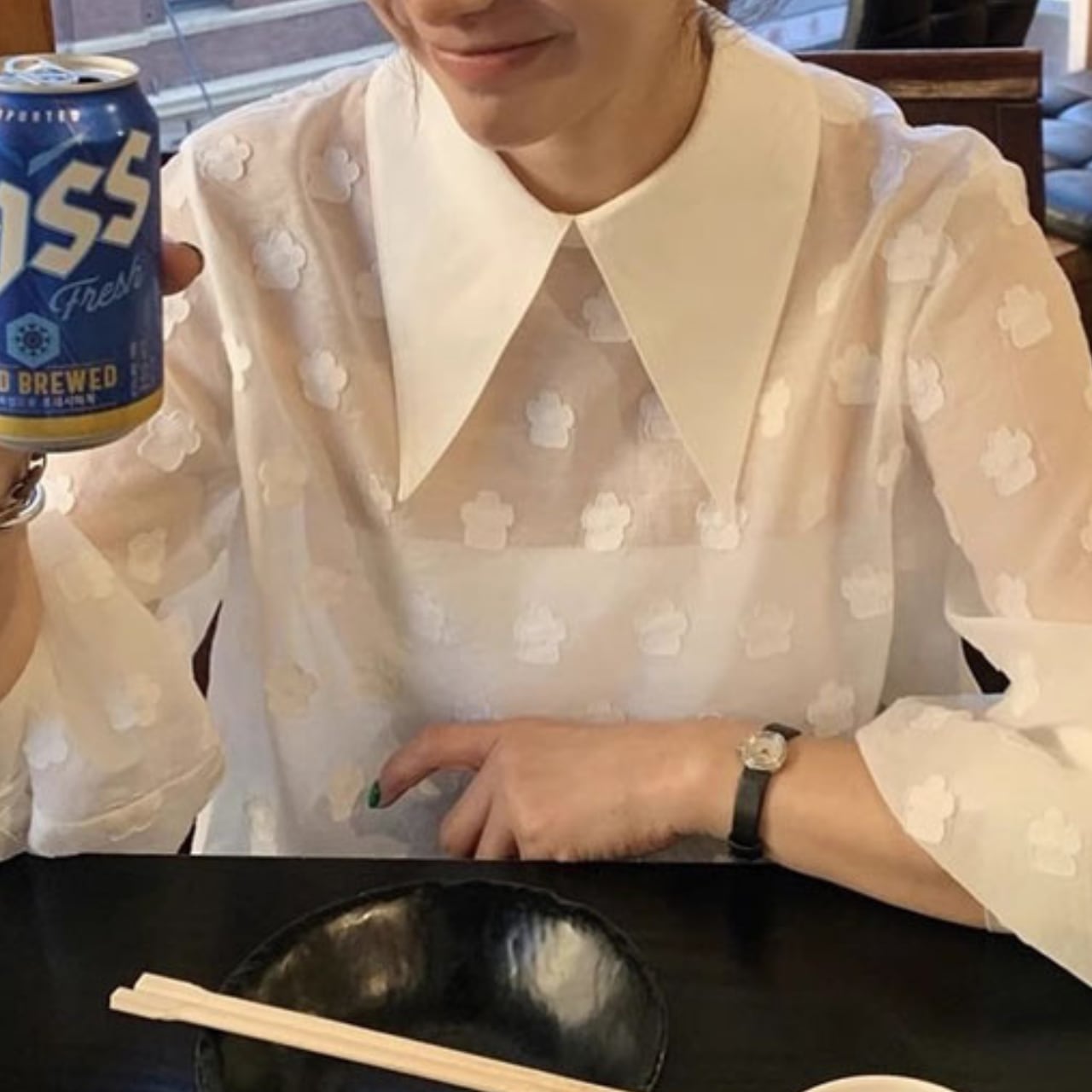 クラシックでシャープなポインテッドカラーが顔周りをすっきりと見せます。