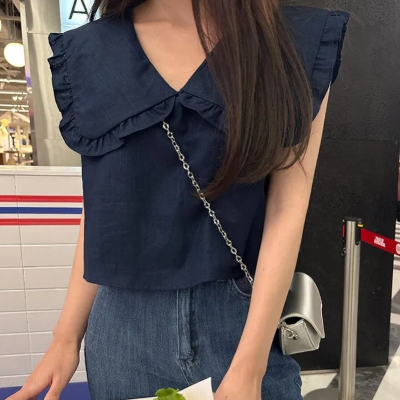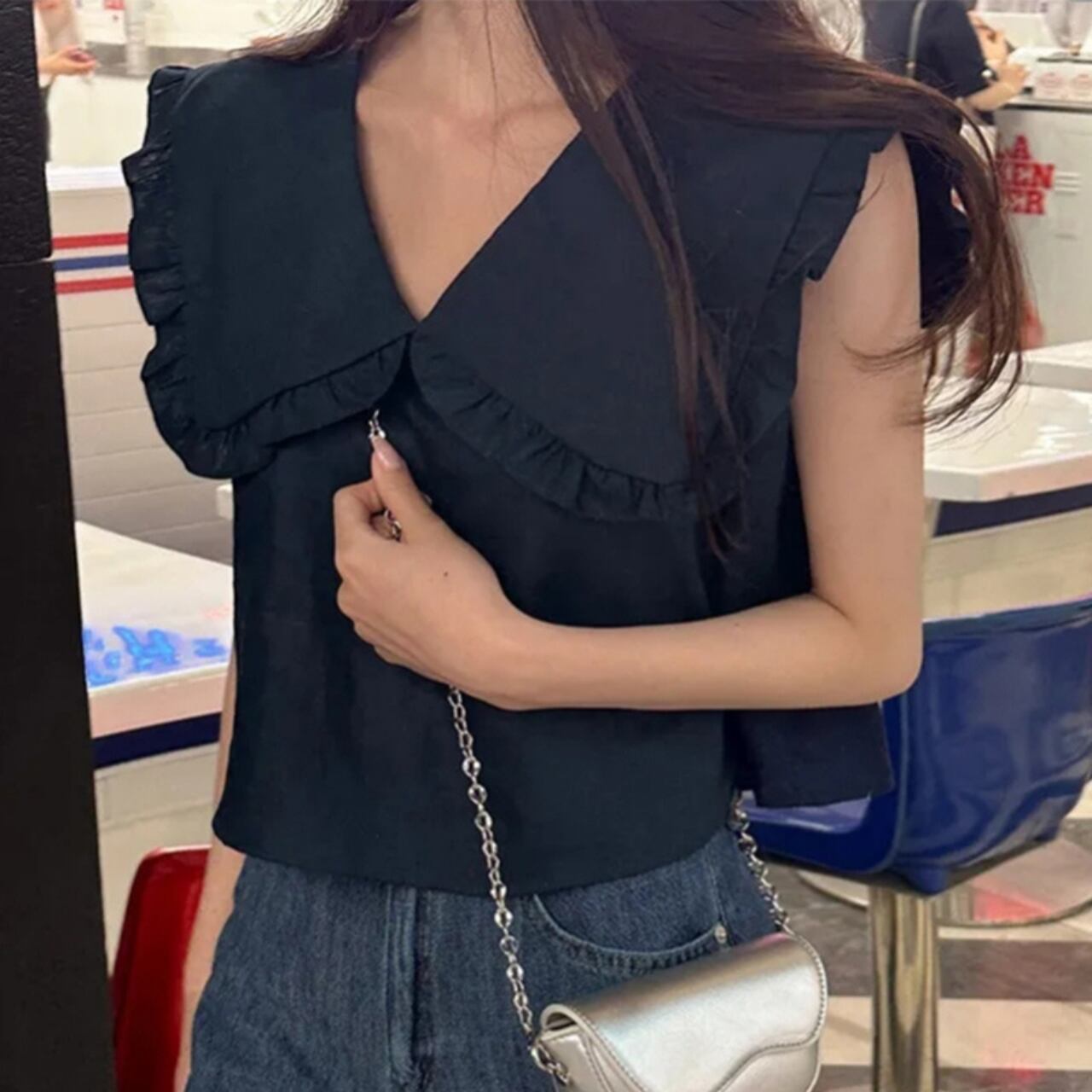 顔周りを華やかに見せる計算されたシルエット。ハイウエストボトムスと相性抜群です!