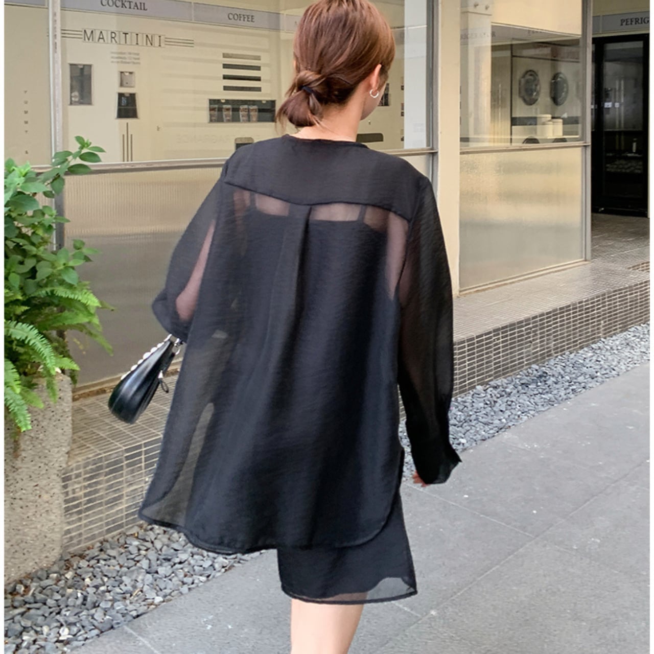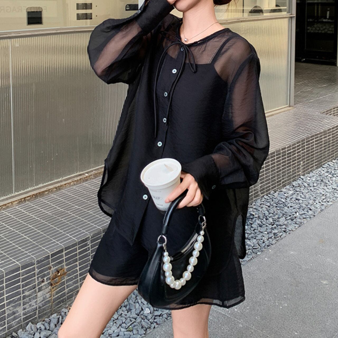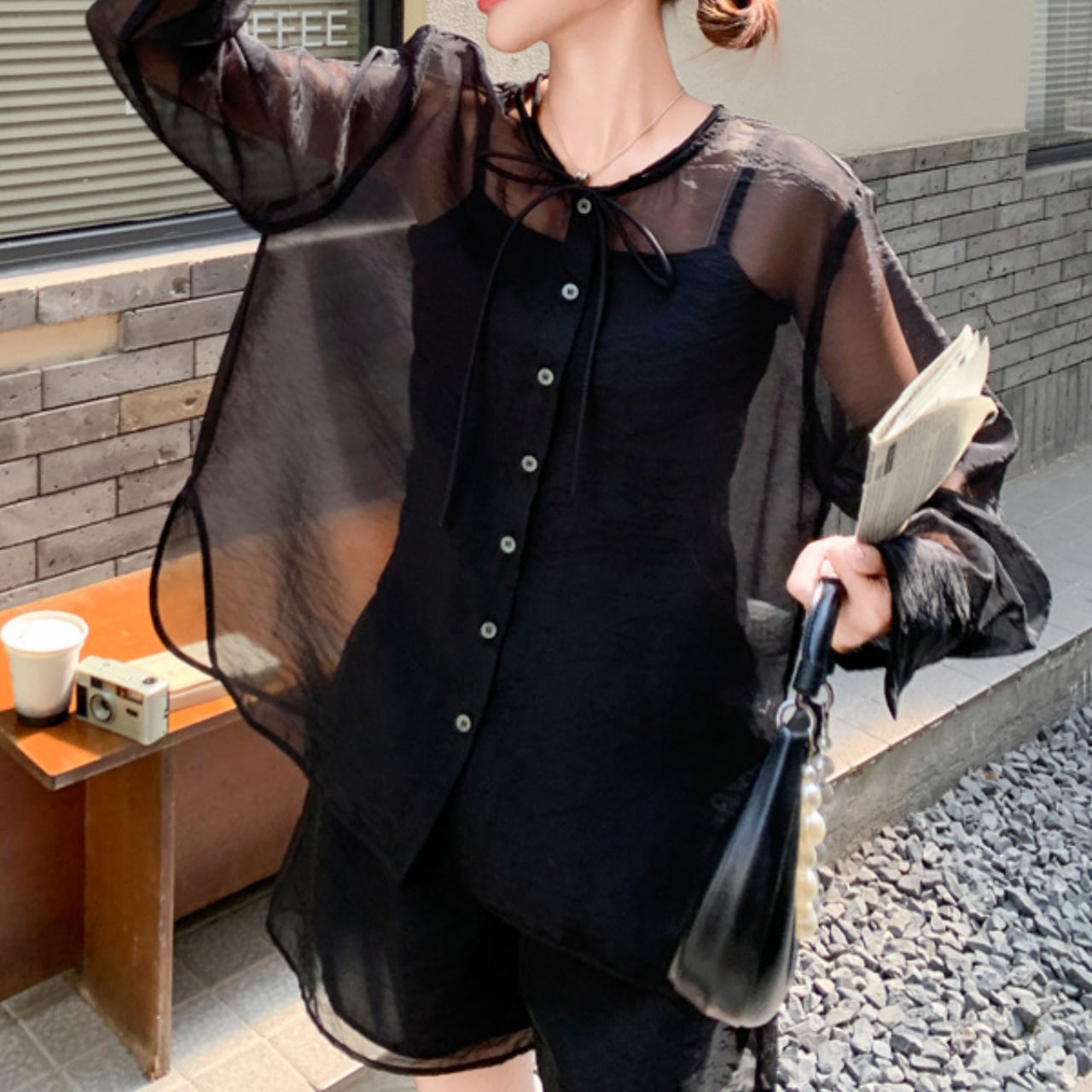 シアーシャツは透け感があり、インナーとの組み合わせ次第でさまざまな表情を楽しむことができます。
