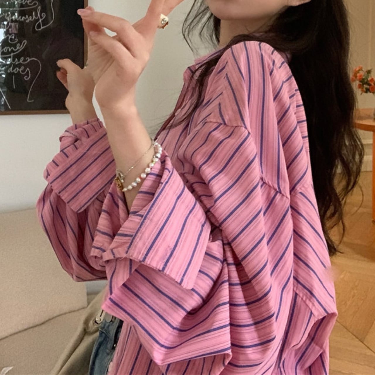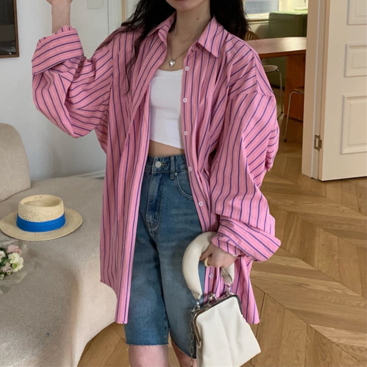 甘すぎない絶妙なピンクカラーに、クラシカルなストライプパターンをプラスしたシャツ。 大人の女性にぴったりの上品さと可愛らしさを両立したデザインです。 トレンド感満載のリラックス感のあるオーバーサイズシルエットで、今っぽいこなれ感を演出。袖を少しまくって着こなすだけで、抜け感のあるスタイリングが完成します。 ✔️おすすめのスタイリング ・デニムやチノパンと合わせて、シンプルなカジュアルコーデを楽しむ! ・スカートと組み合わせて、女性らしさを引き立てたスタイリッシュなスタイリングに! ・秋には、ニットやカーディガンと重ねて、レイヤードスタイルで温かみをプラスするのも魅力的です! ■サイズ M 着丈: 79cm 肩幅: 53cm 胸囲: 126cm 袖丈: 52cm L 着丈: 80cm 肩幅: 54cm 胸囲: 128cm 袖丈: 53cm XL 着丈: 81cm 肩幅: 55cm 胸囲: 130cm 袖丈: 54cm 2XL 着丈: 82cm 肩幅: 56cm 胸囲: 132cm 袖丈: 55cm 3XL 着丈: 83cm 肩幅: 57cm 胸囲: 134cm 袖丈: 56cm ※採寸方法により1〜3cmの誤差がある場合がございます。 ■カラー ピンク ■商品番号 S1431 ・・━━・・━━・・━━・・━━・・━━・・━━・・ 【お届けについて】 当ショップの商品は海外より取り寄せ・発送となりますので、ご入金から3〜4週間前後での発送となります。 【お支払い方法について】 ・クレジットカード決済(VISA/Master/JCB/AMERICAN EXPRESS) ・キャリア決済(docomo/au/Softbank/Y!mobile) ・あと払い Pay ID決済 【注意事項】 ・商品の在庫切れや生産中止、生産遅延が生じる場合がございますので、ご了承ください。 ・こちらは輸入品であり、日本製品とは検品基準が異なる場合があります。新品未使用品でも、わずかな汚れや傷が見受けられることがあります。 ・イメージ違いやサイズ・カラー相違による返品・交換はお断りしております。 ・お手持ちのスマートフォンやパソコンの環境によって、商品のお色味が異なる場合があります。 ・発送時期によってデザインや素材、細部が変更される場合がございます。 ご購入前にこちらをお読みください →https://solemy.base.shop/blog/2024/11/20/121101 ・・━━・・━━・・━━・・━━・・━━・・━━・・