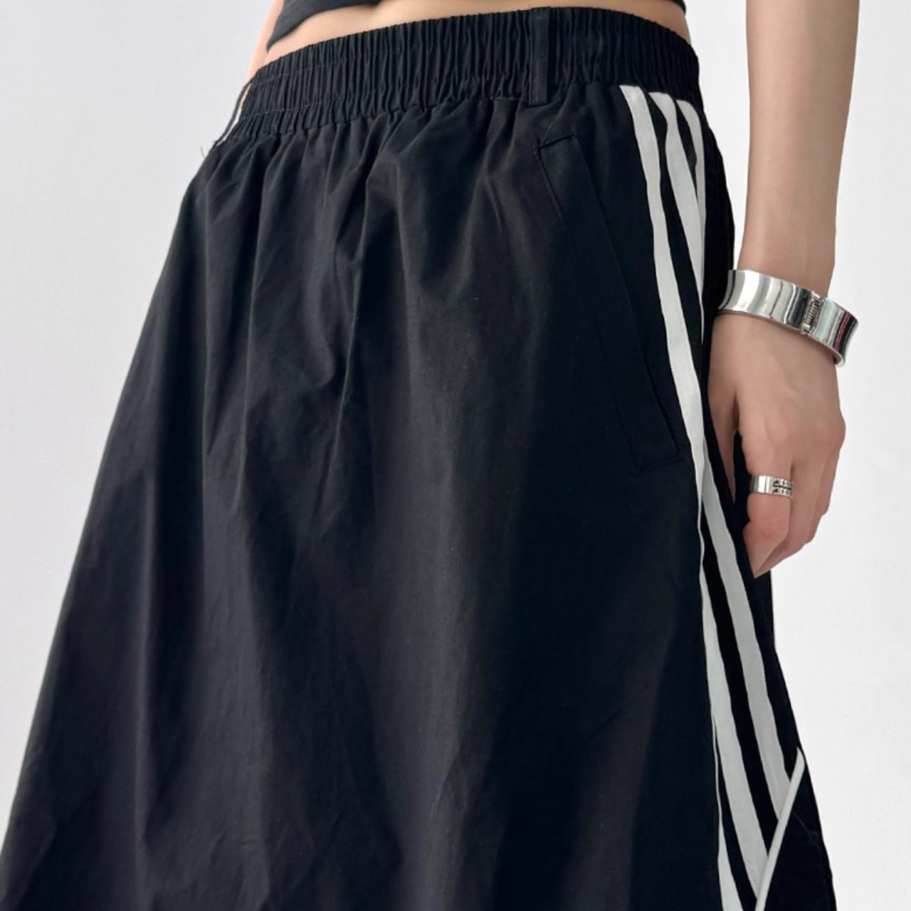 洗練されたブラックベースに映える白のサイドライン。スポーティーな3本ラインがアクティブな印象を演出し、ミニマルながらもインパクトのあるデザイン性です。