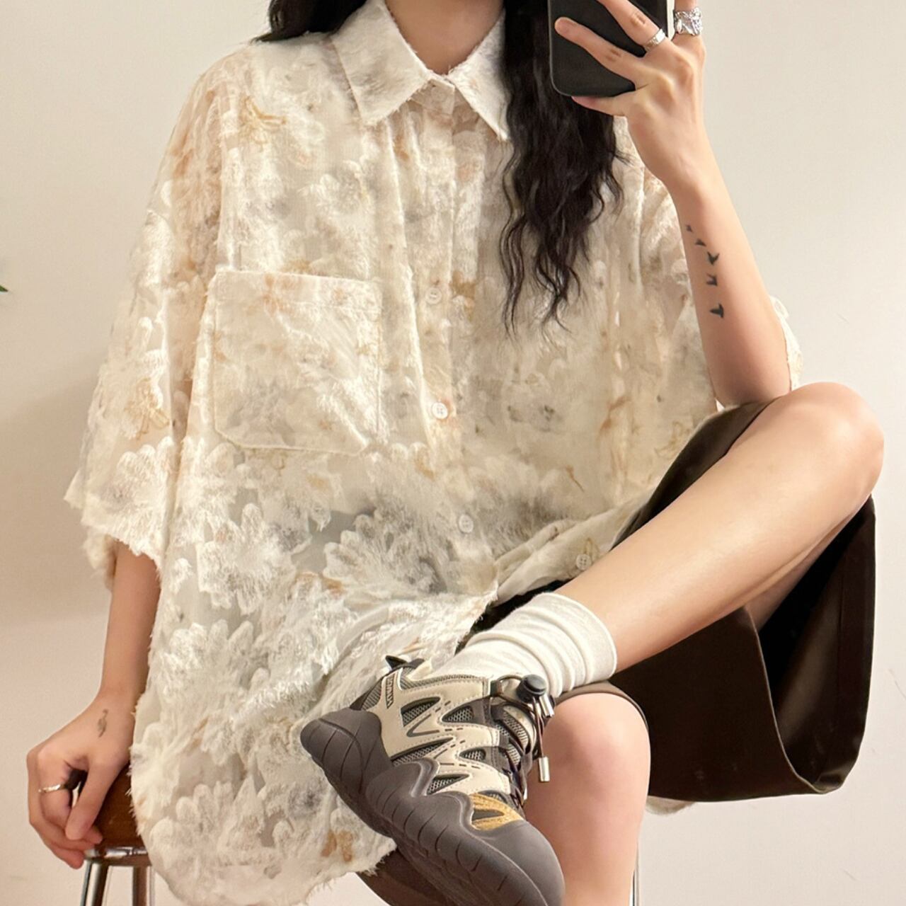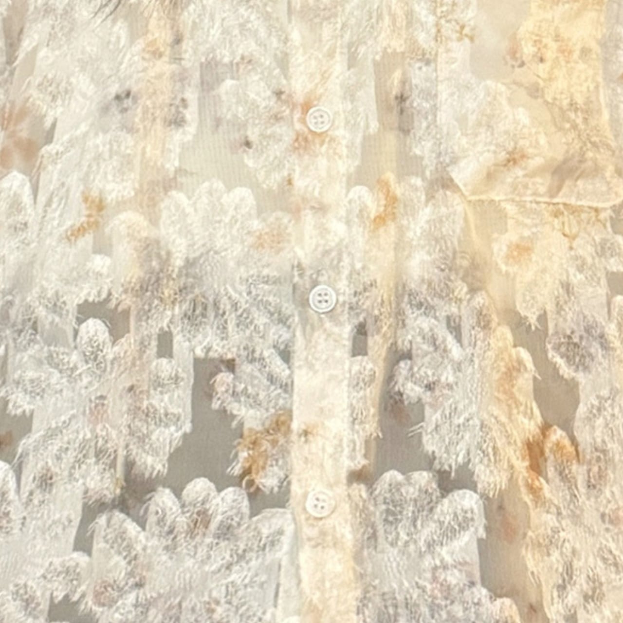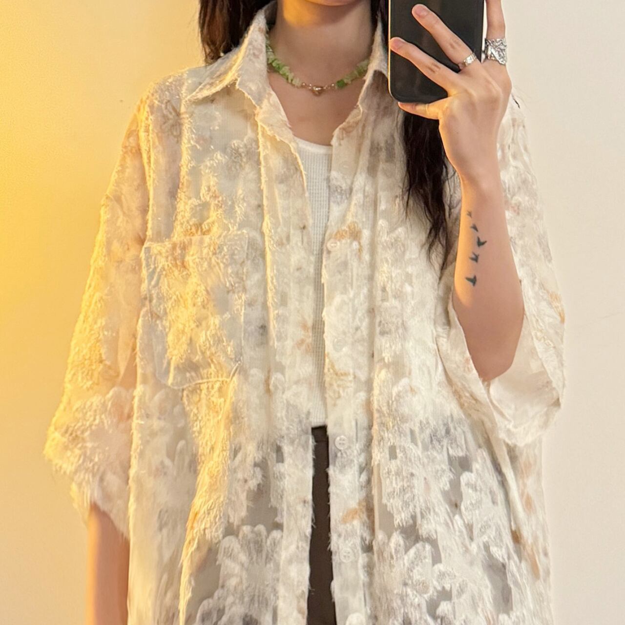 繊細なレース素材が織りなす美しいテクスチャーと、程よい透け感が魅力的な半袖シャツ。