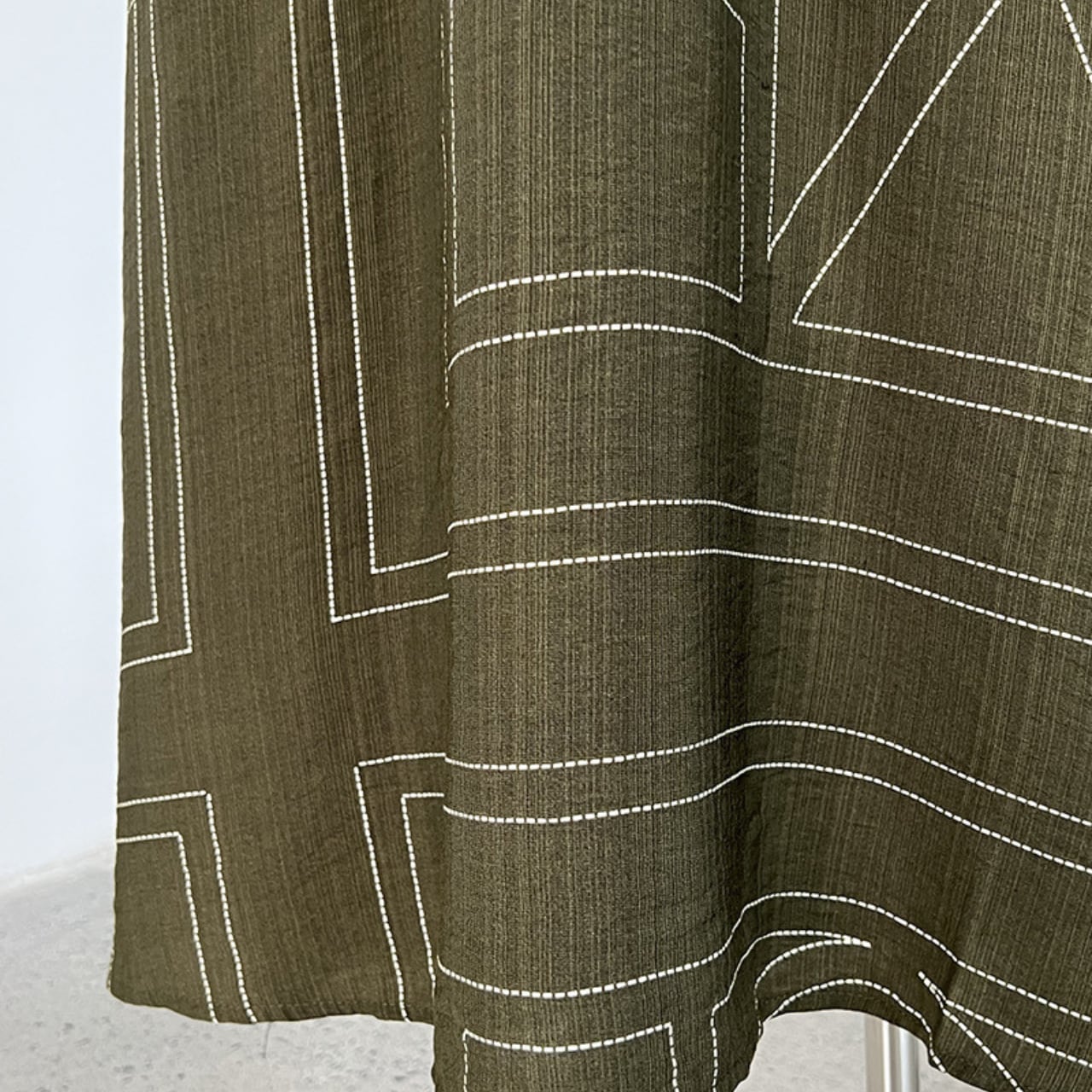 直線と曲線が調和した洗練されたパターンが、着る人を一瞬でモードな雰囲気に導きます。