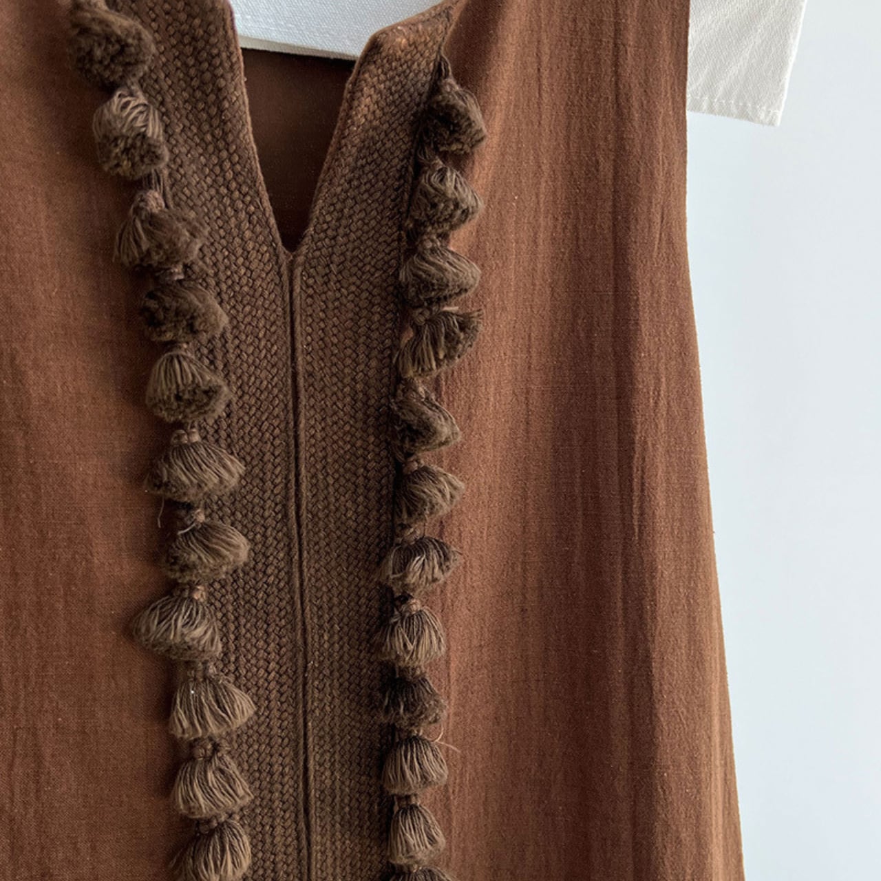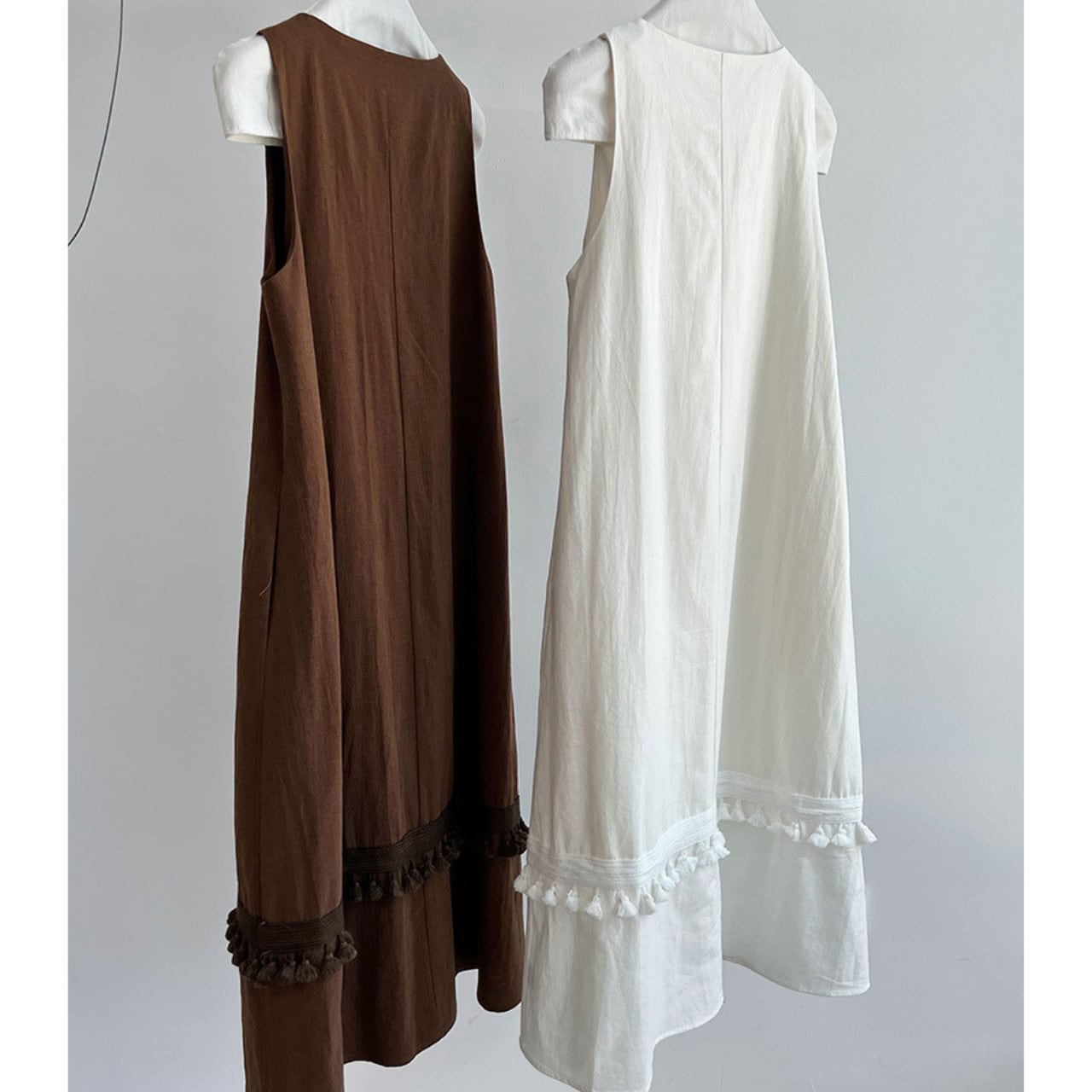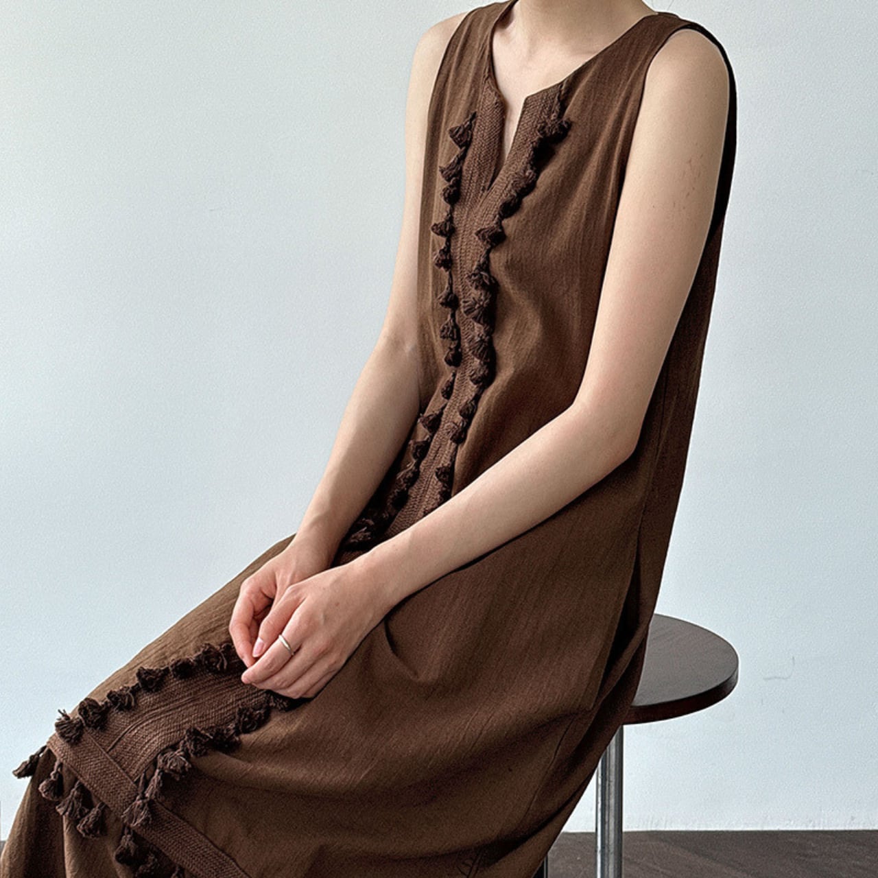 繊細なタッセルフリンジが全体を彩る、洗練されたボヘミアンスタイルのワンピース。