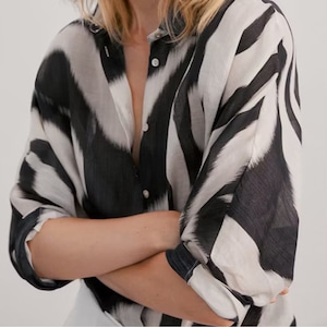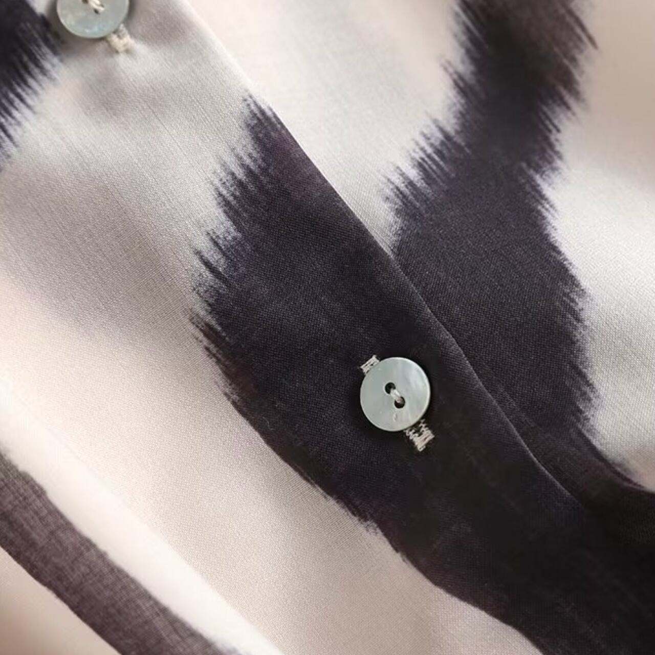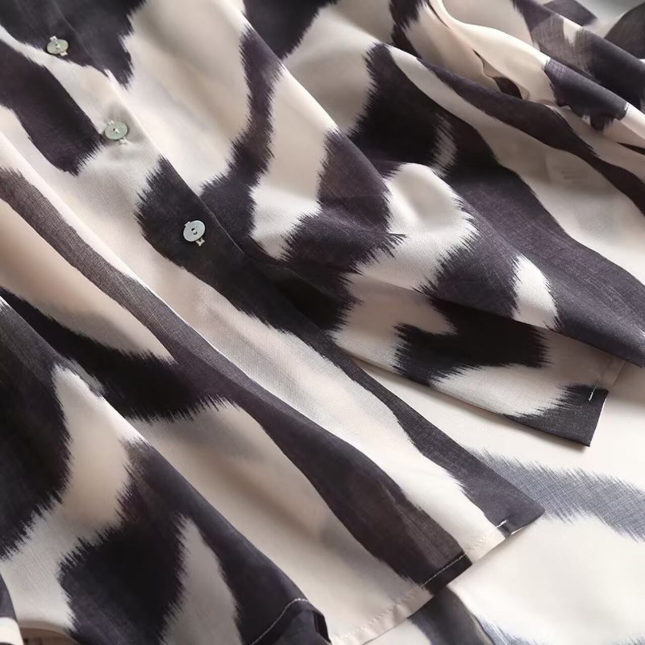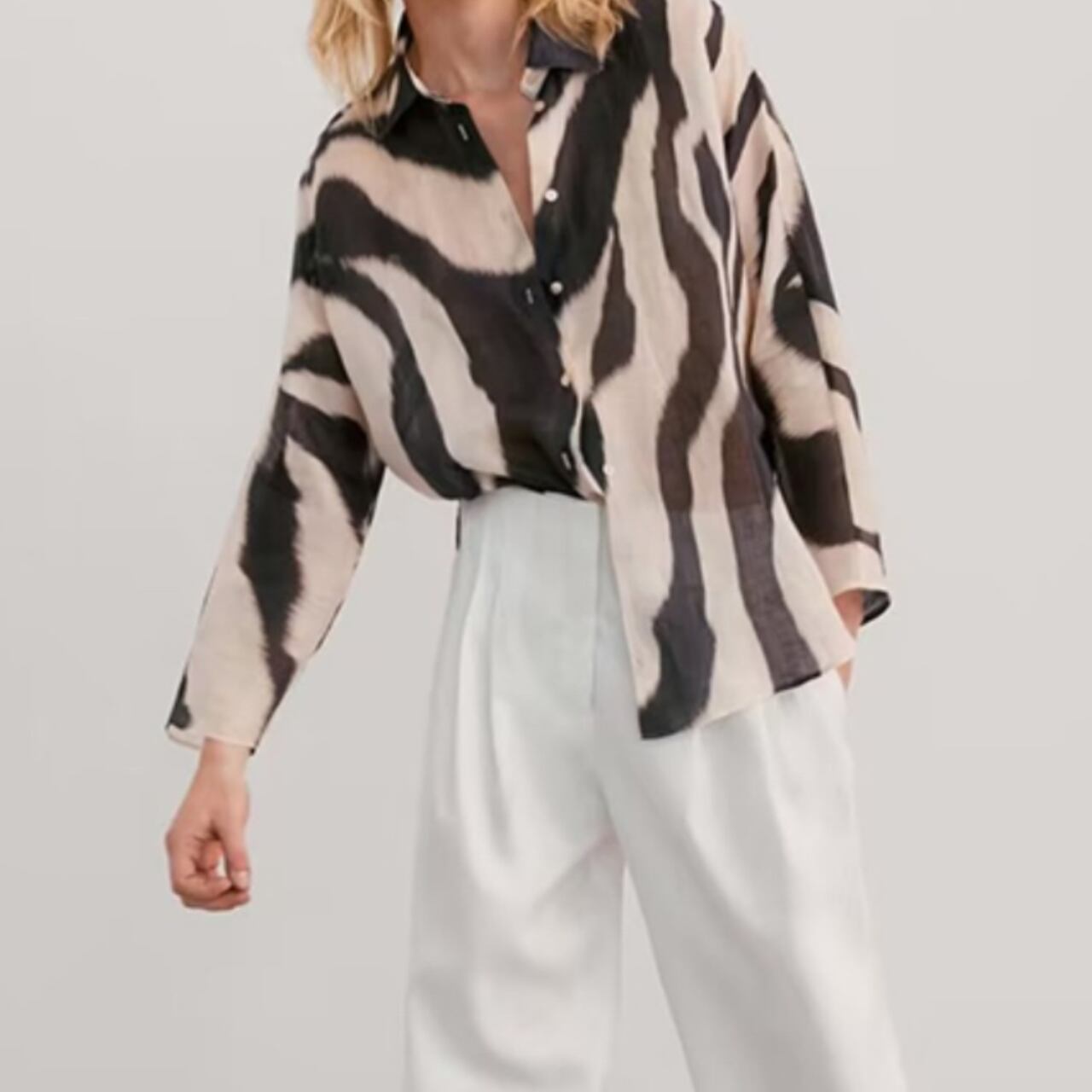 アニマルプリントの中でも特にスタイリッシュなゼブラ柄を、着回しやすいクラシックなシャツデザインに落とし込んだ、ワンランク上のファッションアイテムです。