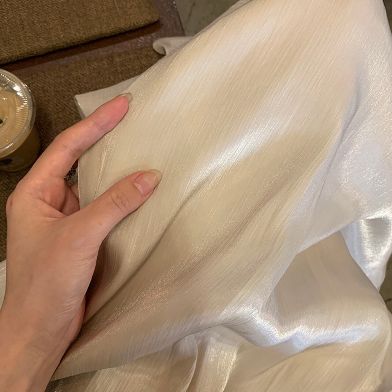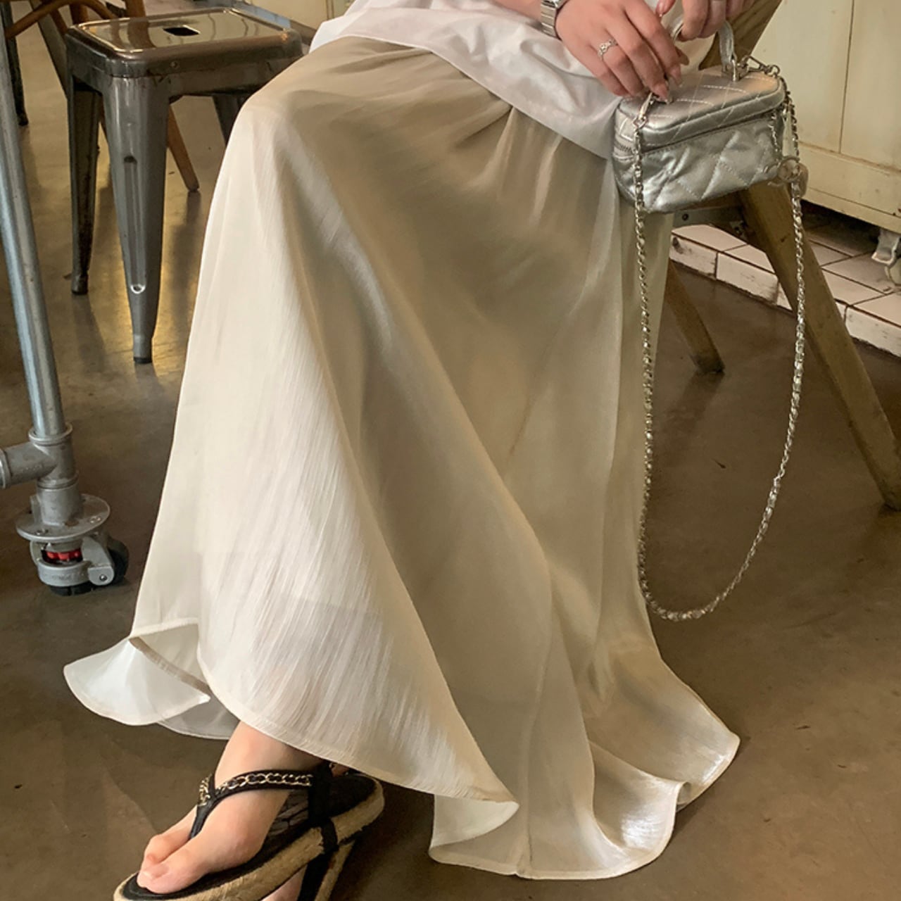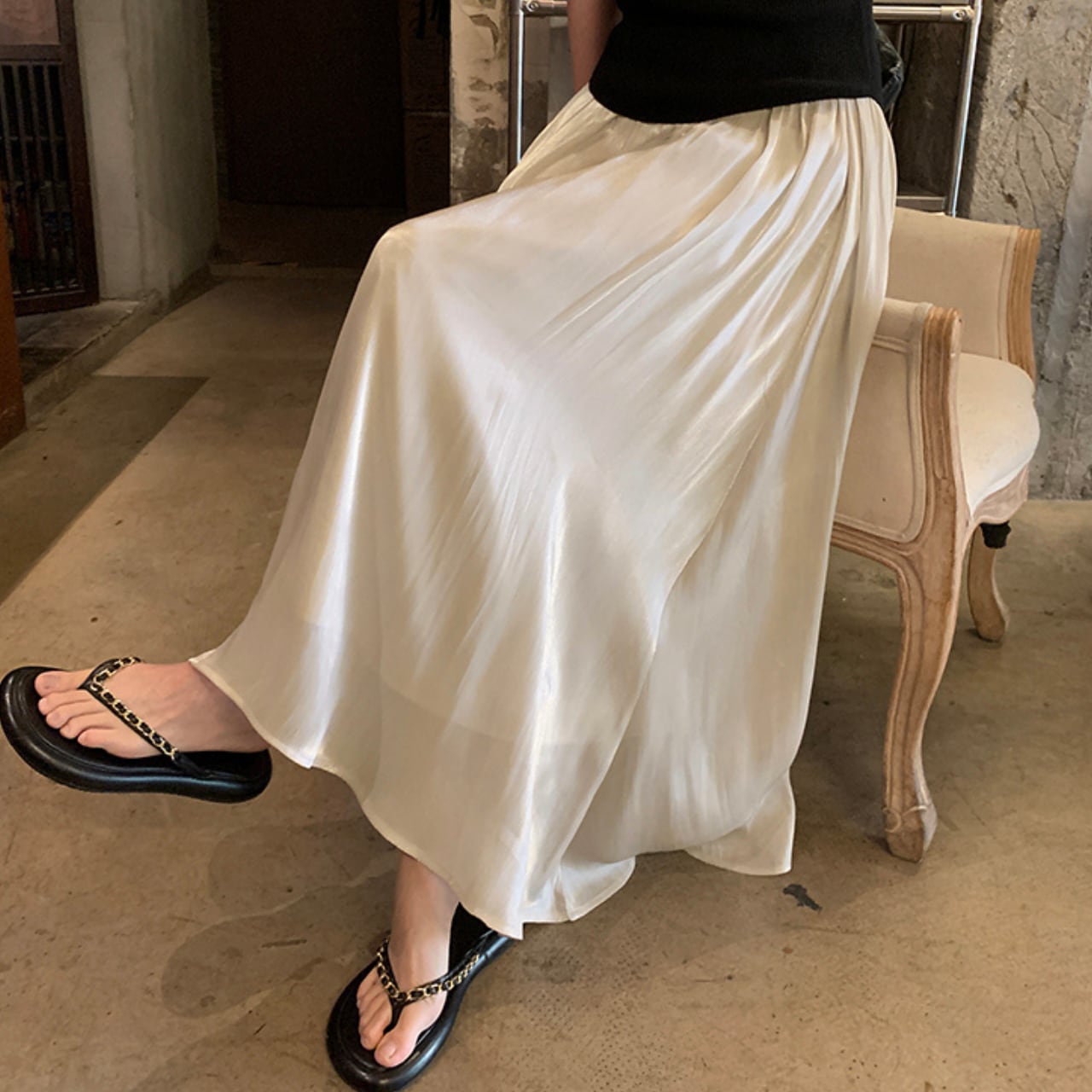 歩くたびに上品な光沢を放つホワイトスカート。滑らかな質感で、肌触りも抜群。