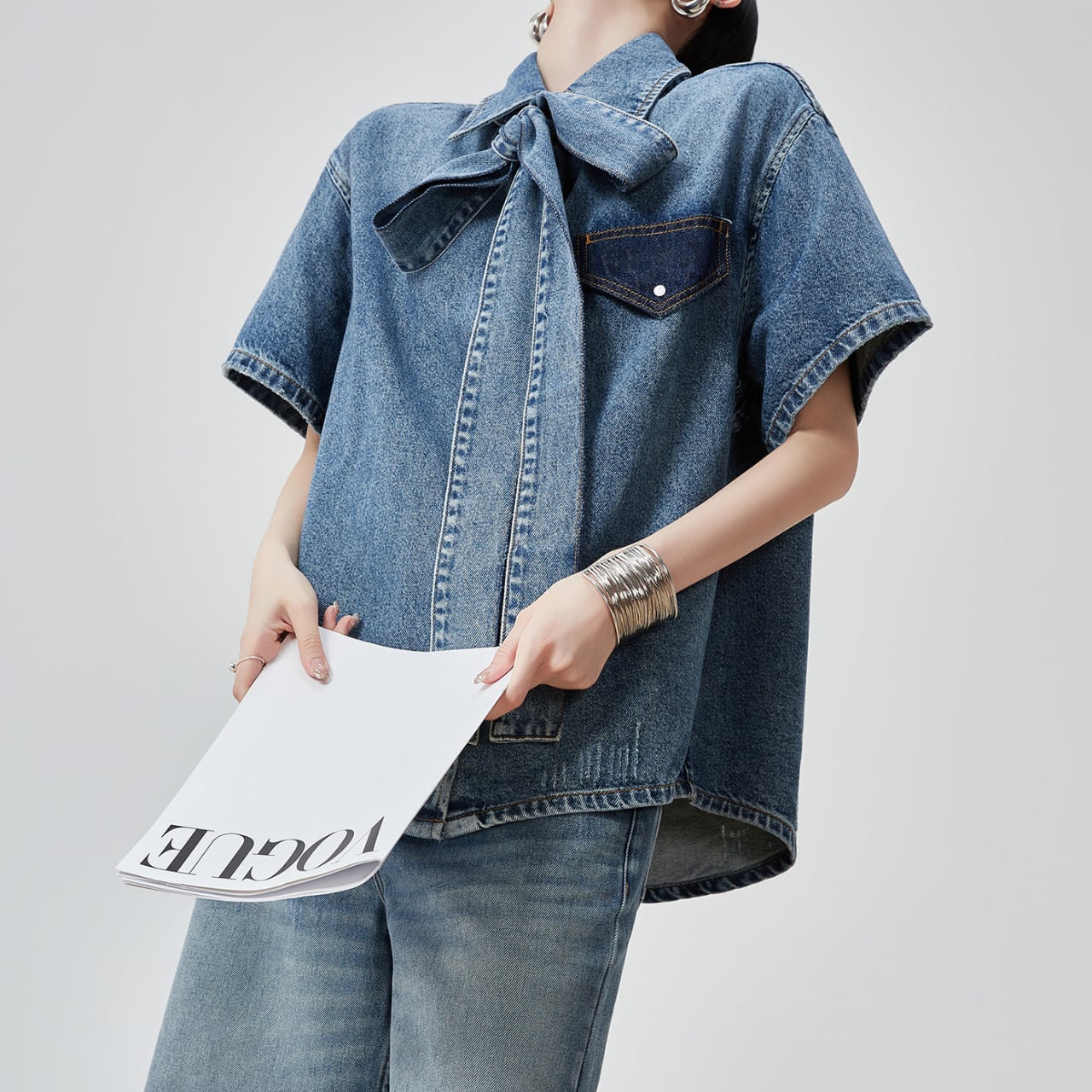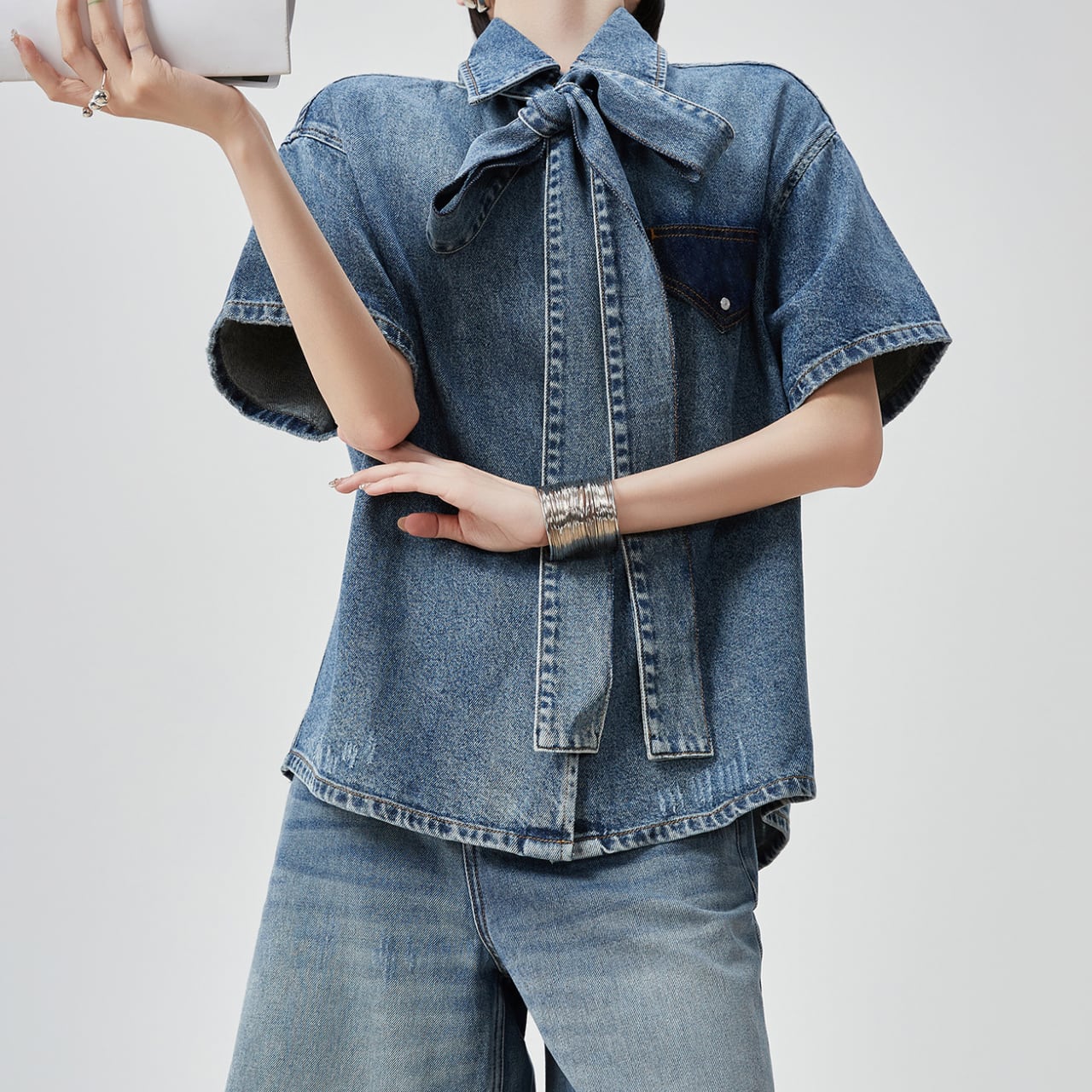 Denim bowtie blouse S1493