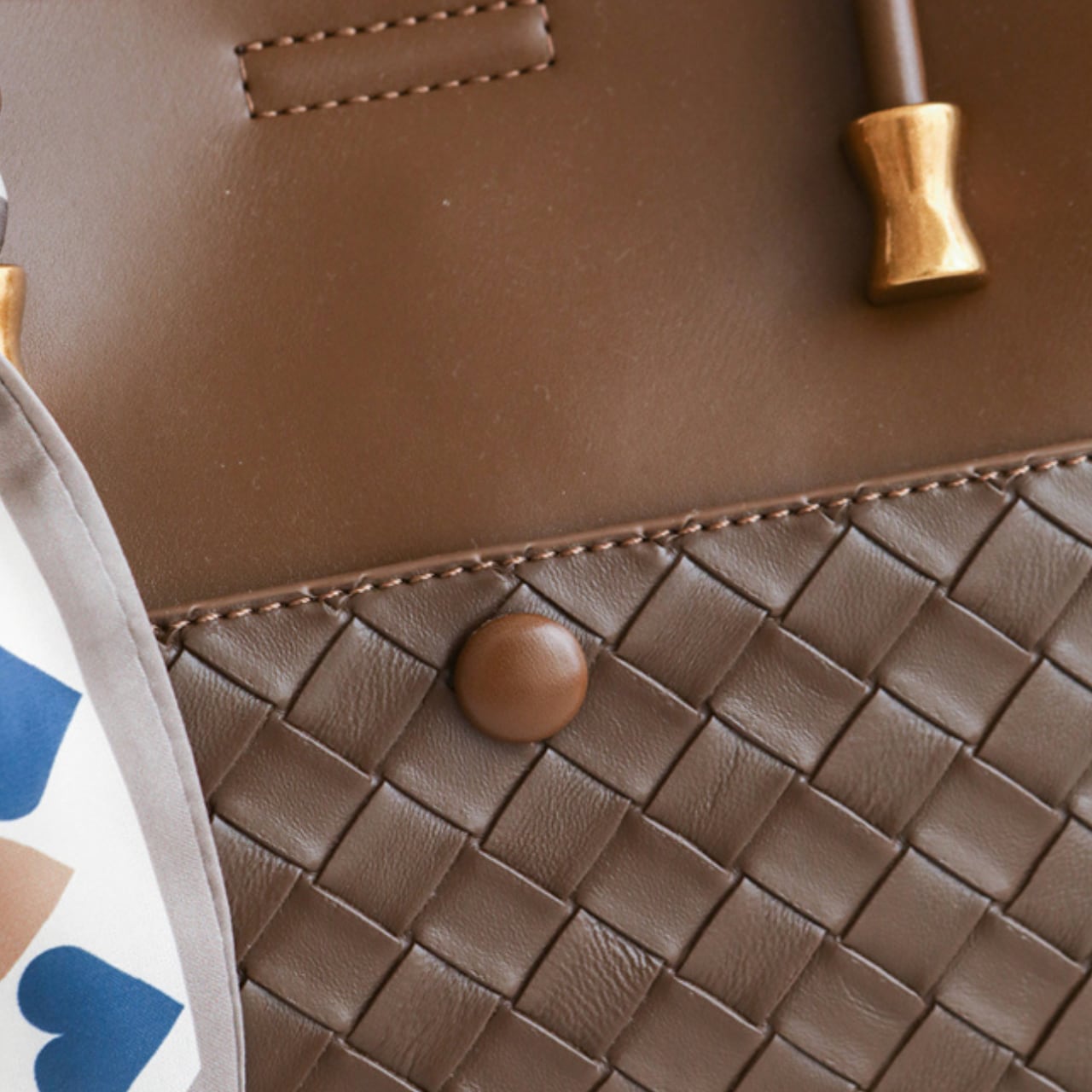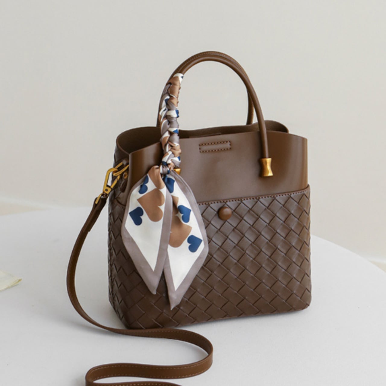 ハンドバッグとショルダーバッグとして使える2wayスカーフ付き編み込みバッグ。