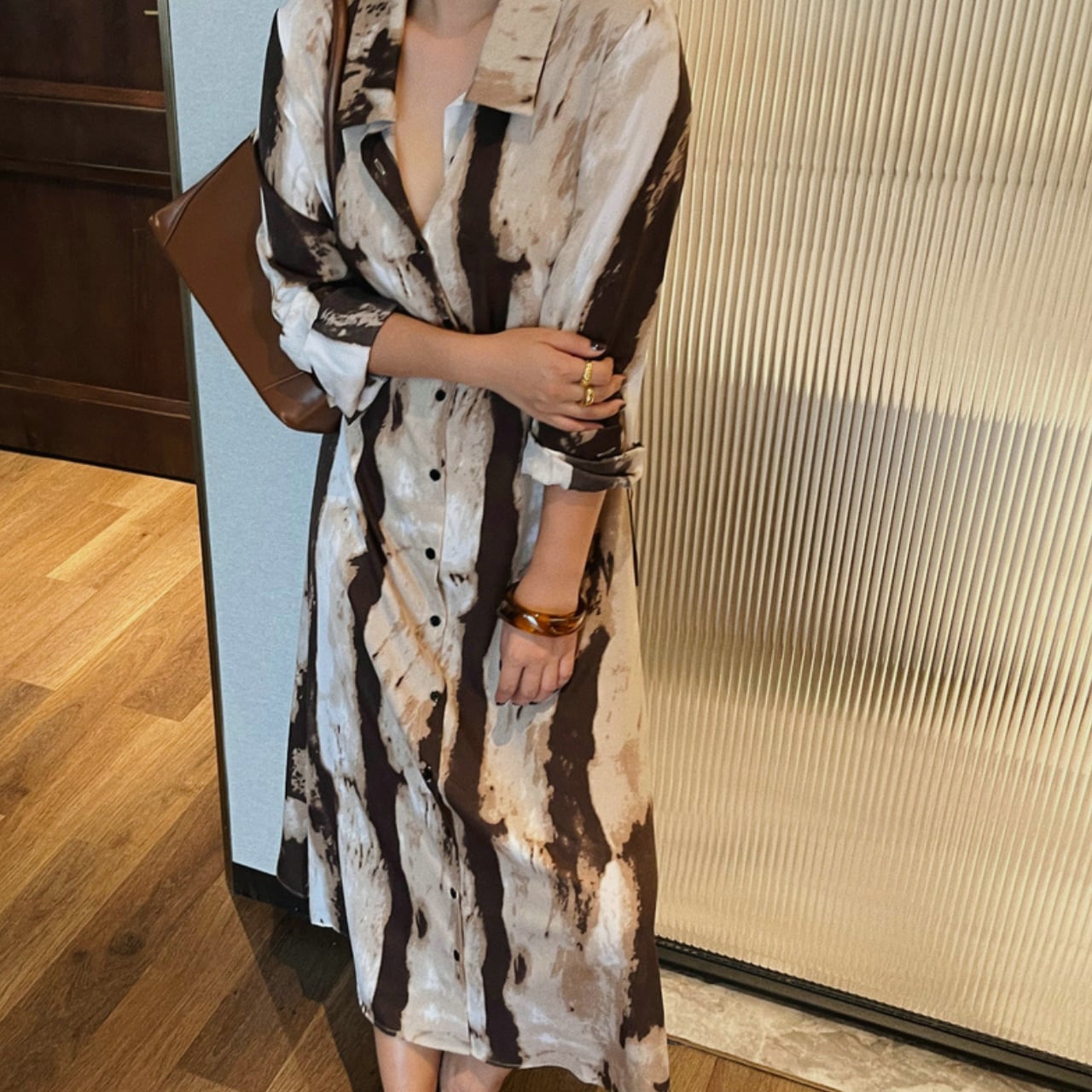 モノトーンベースに、絵の具が躍動するような有機的なパターン、墨絵のような深みのあるトーンが、知的で洗練された印象を演出します。