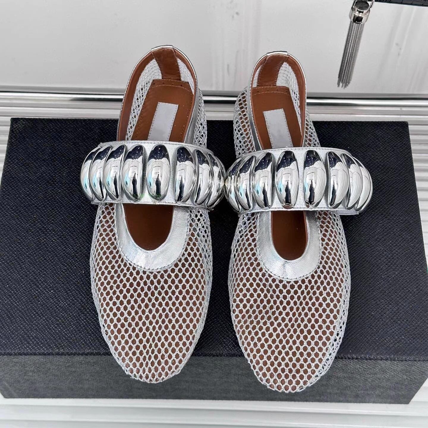 〜メッシュで魅せる大人のスタイリッシュ〜 軽やかな履き心地と洗練されたデザインが融合した、新感覚メッシュパンプス。 足全体を包み込みながらも、空気の流れを確保し、ムレを防いでオールデイ快適な履き心地を実現します。 足甲を飾る立体的なメタルオーナメントが、シンプルなメッシュデザインにラグジュアリーな表情をプラス。歩くたびに光を反射し、足元に華やかさを演出します。 ✔️おすすめのスタイリング ・ワンピースと合わせてエレガントコーデ。 ・デニムやショートパンツと合わせて、カジュアルな夏スタイルを楽しむ。 ・モノトーンコーデとの相性も抜群! ■サイズ 35 22.5cm 36 23cm 37 23.5cm 38 24cm 39 24.5cm ■カラー ・ブラック×シルバー ・シルバー ・ゴールド ・ブラック×ブラック ■商品番号 S1519 ・・━━・・━━━━━━━・・━━・・━━・・ 【お届けについて】 当ショップの商品は海外より取り寄せ・発送となりますので、ご入金から3〜4週間前後での発送となります。 【お支払い方法について】 ・クレジットカード決済(VISA/Master/JCB/AMERICAN EXPRESS) ・キャリア決済(docomo/au/Softbank/Y!mobile) ・あと払い Pay ID決済 【注意事項】 ・商品の在庫切れや生産中止、生産遅延が生じることがありますので、ご了承ください。 ・こちらは輸入品であり、日本製品とは検品基準が異なる場合があります。新品未使用品でも、わずかな汚れや傷が見受けられることがあります。 ・イメージ違いやサイズ・カラー相違による返品・交換はお断りしております。 ・お手持ちのスマートフォンやパソコンの環境によって、商品のお色味が異なる場合があります。 ・発送時期によってデザインや素材、細部が変更されることがあります。 ご購入前にこちらをお読みください →https://solemy.base.shop/blog/2024/11/20/121101 ・・━━・・━━・・━━・・━━・・━━・・━━・・