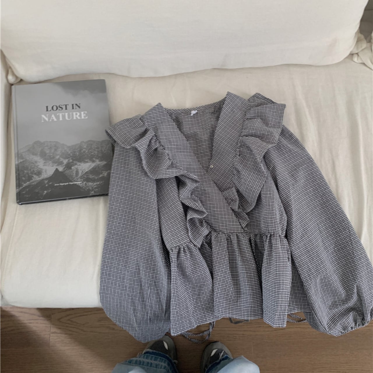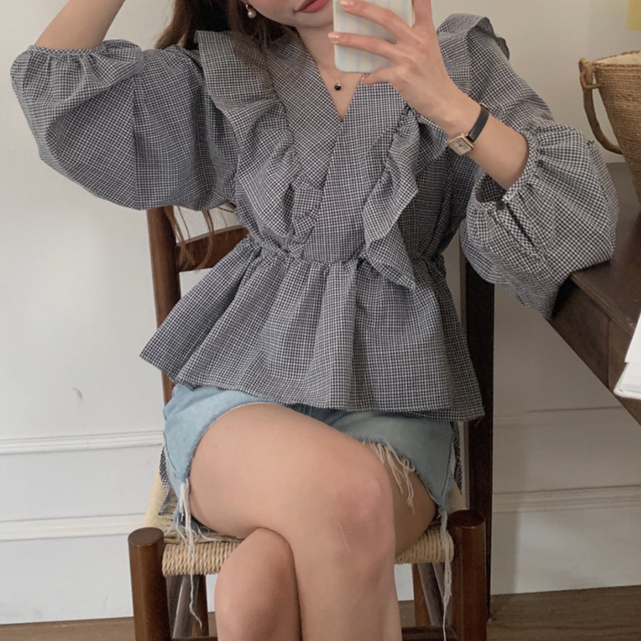 胸元を華やかに彩る縦フリルが、シンプルながらも印象的なアクセントに。