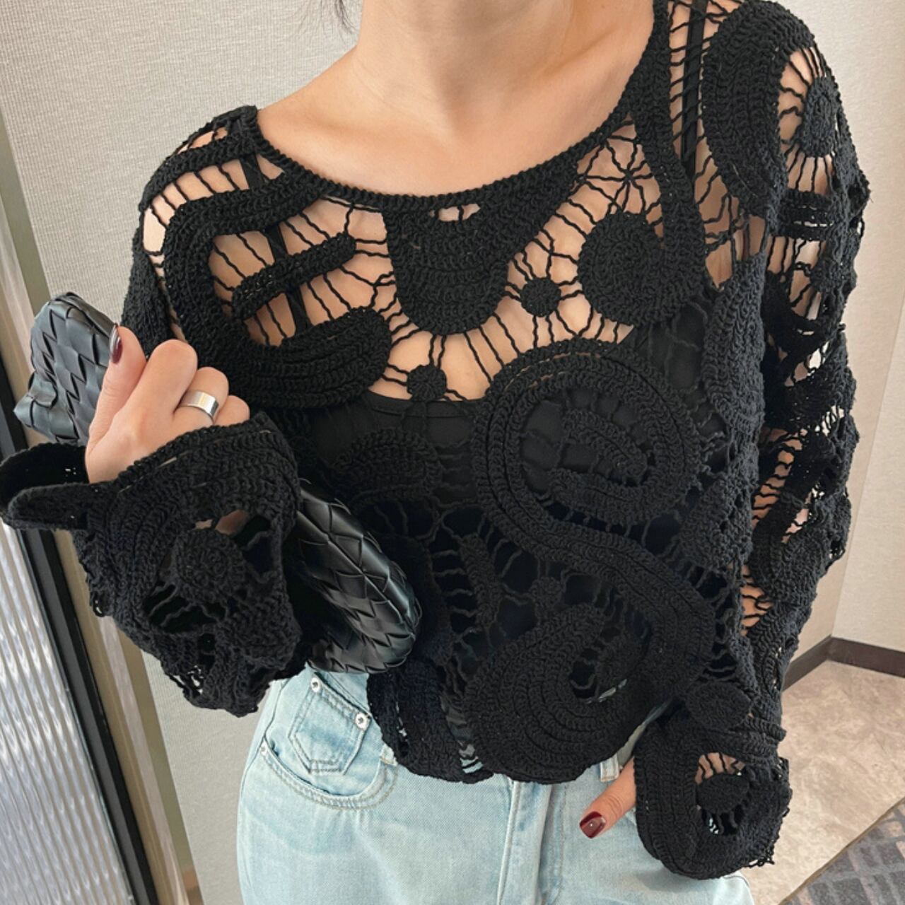 ホローなデザインが涼しげな印象を与え、シンプルながらも存在感抜群のトップス。