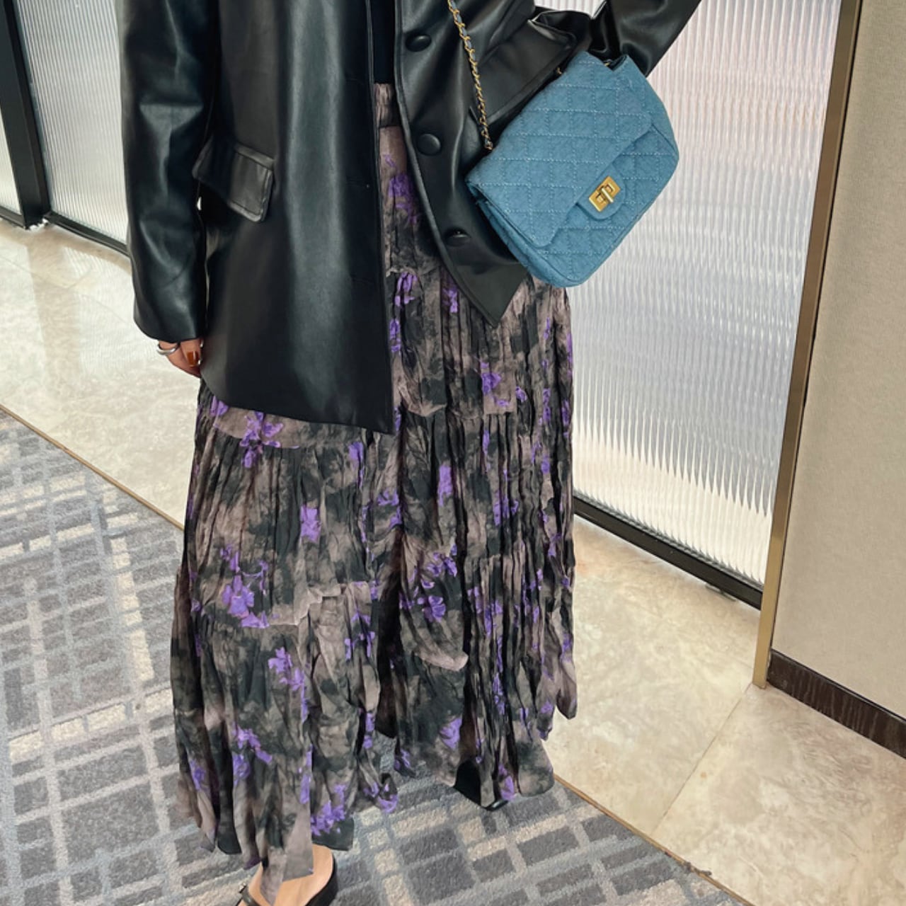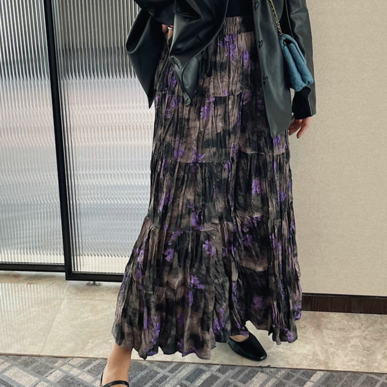 繊細なシワ加工プリーツが歩くたびに美しく揺れ動き、上品な女性らしさを演出します。