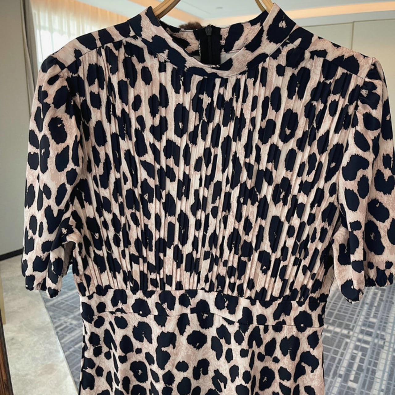 トレンドのヒョウ柄を洗練されたシルエットで表現した一枚です。